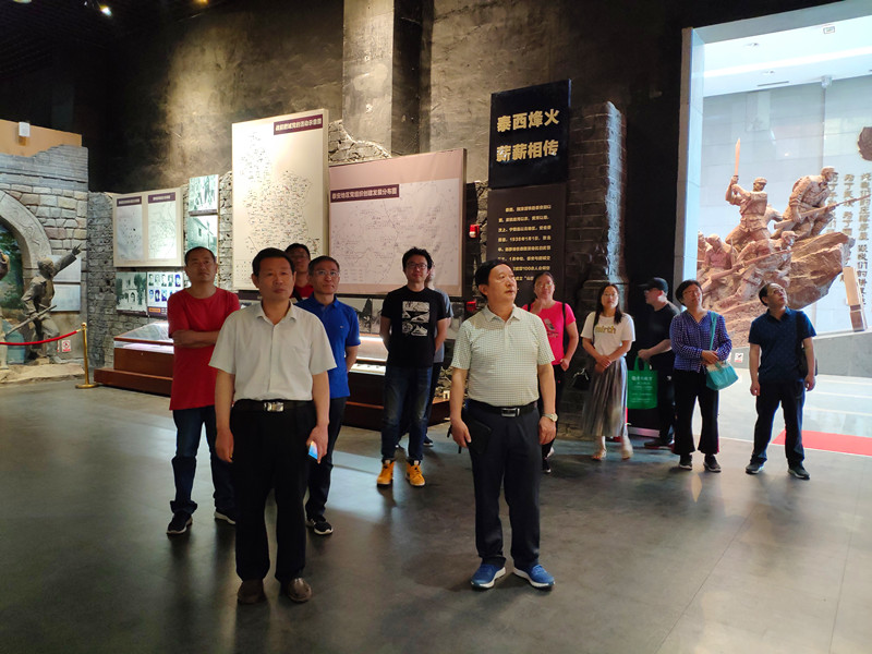 测绘系和电子系党员和工会会员首先来到肥城市陆房突围胜利纪念馆,在纪念碑前重温入党誓词,缅怀革命先烈。一行人跟随讲解员详细了解了八路军第115师和地方武装用信念、勇气与智慧浴血奋战日寇、成功突围的革命历史。一张张照片、一件件实物让全体党员仿佛回到那个战火纷飞的抗日战争年代,心灵得到洗礼,思想得到升华。大家在缅怀革命先烈的同时,都深深感受到要珍惜现在的工作和生活,牢记历史,铭记那些为祖国民族解放事业抛头颅洒热血的英雄烈士,不忘初心,立足实际,用心、用力、用情做好教书育人这一伟大事业。