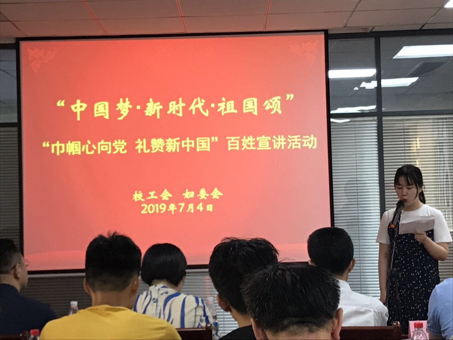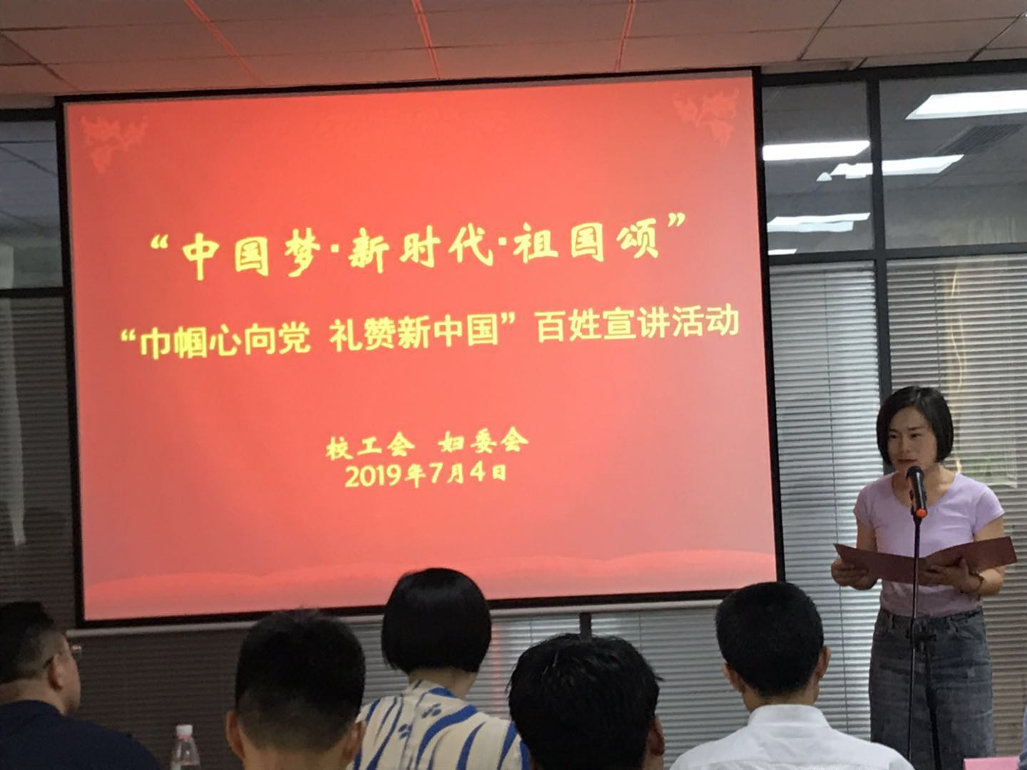 周倩老师在学校工会举办的“巾帼心向党 礼赞新中国”百姓宣讲活动讲述《苔花如米小,也学牡丹开》故事。