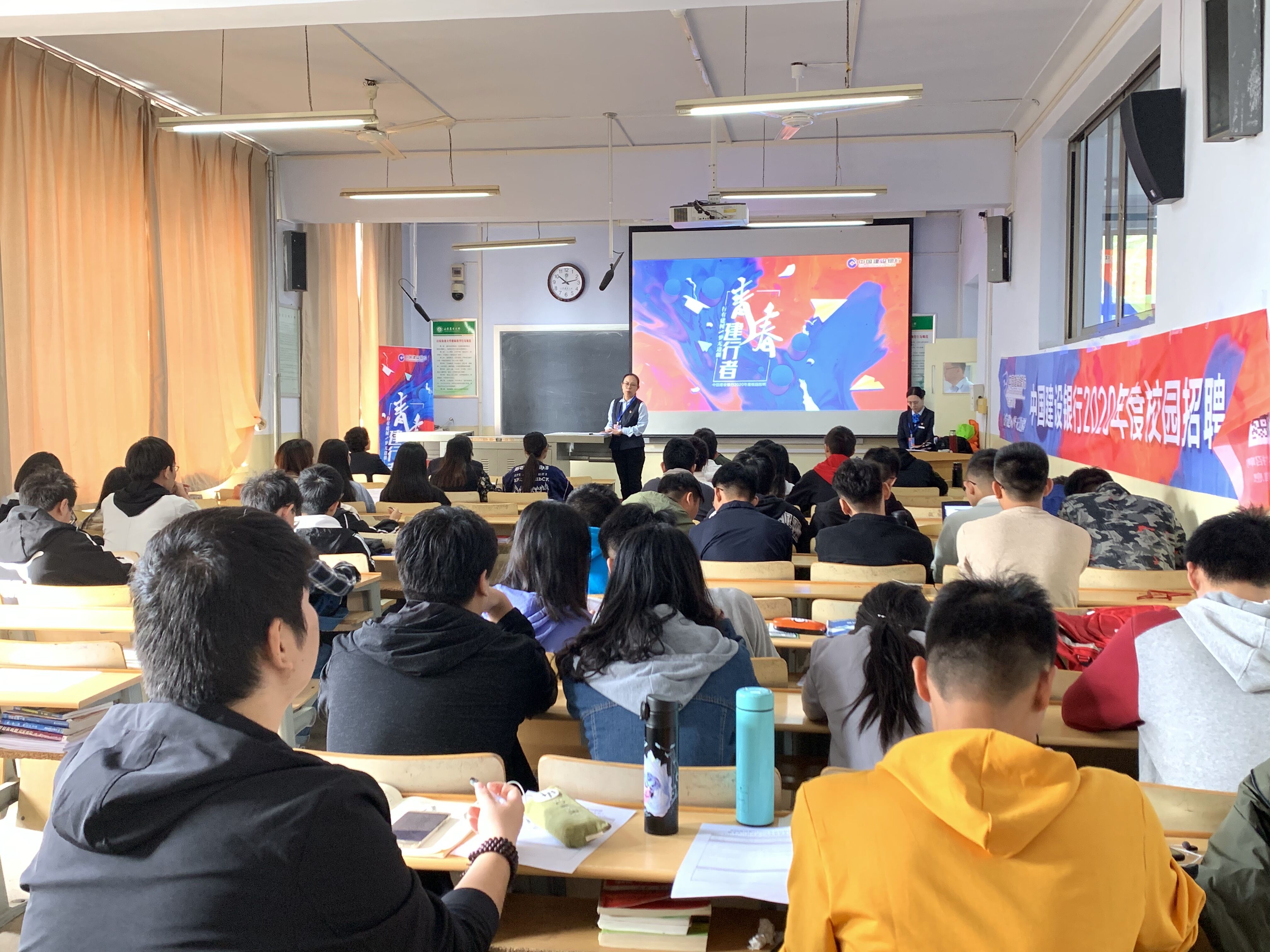 10月11日,中国建设银行山东省分行在我校北校区5S301举办招聘会,我校2020届百余名大学生参加。