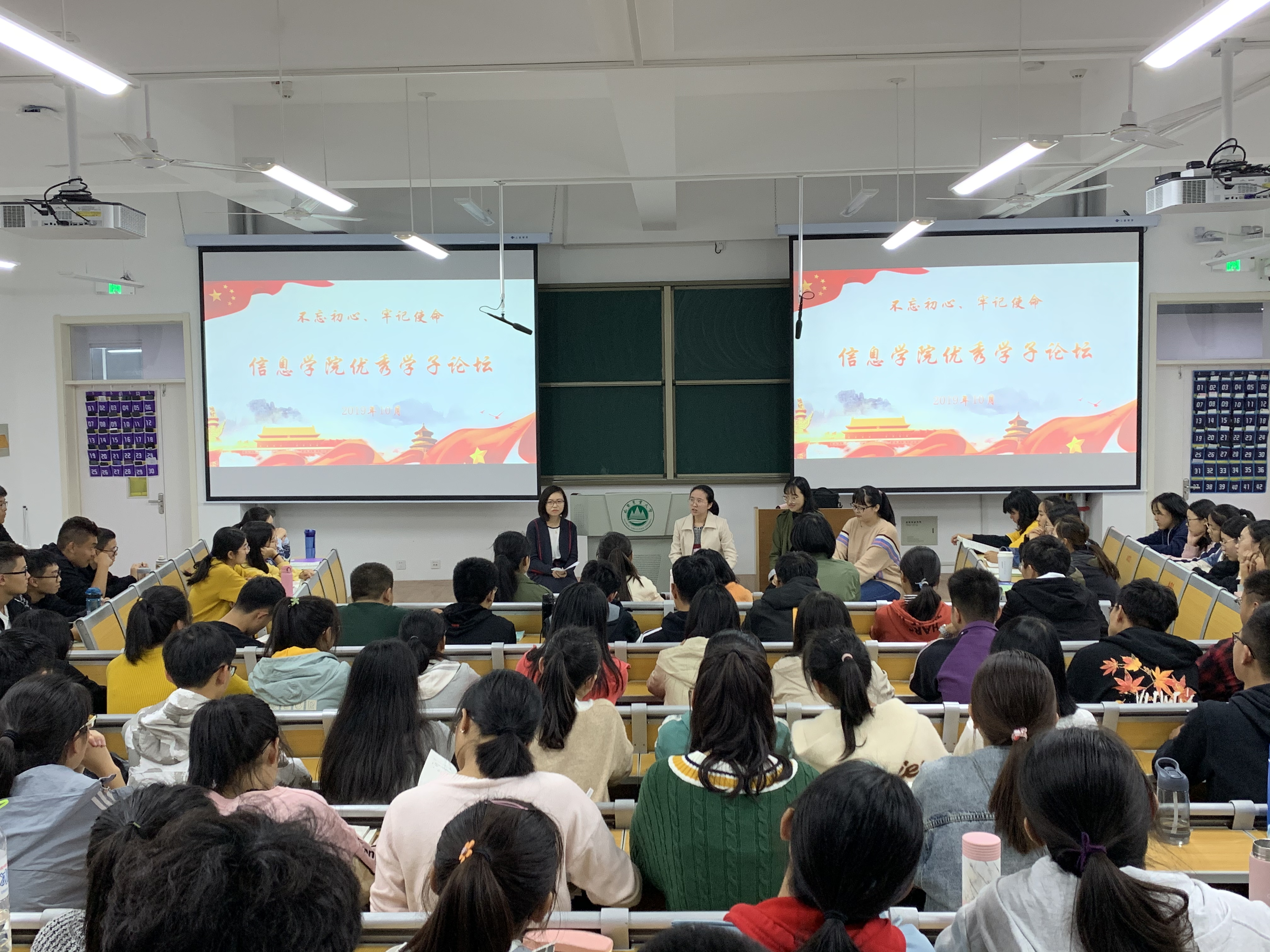 为进一步促进我院学风建设,真正将主题教育落在实处。10月11日晚,学院于东南校区教学楼和南校区教学楼举办“不忘初心、牢记使命”优秀学子访谈活动,本次访谈面向2019级全体新生开展,邀请了15位16级不同专业的推免学生代表,由学院团委老师担任主持人。