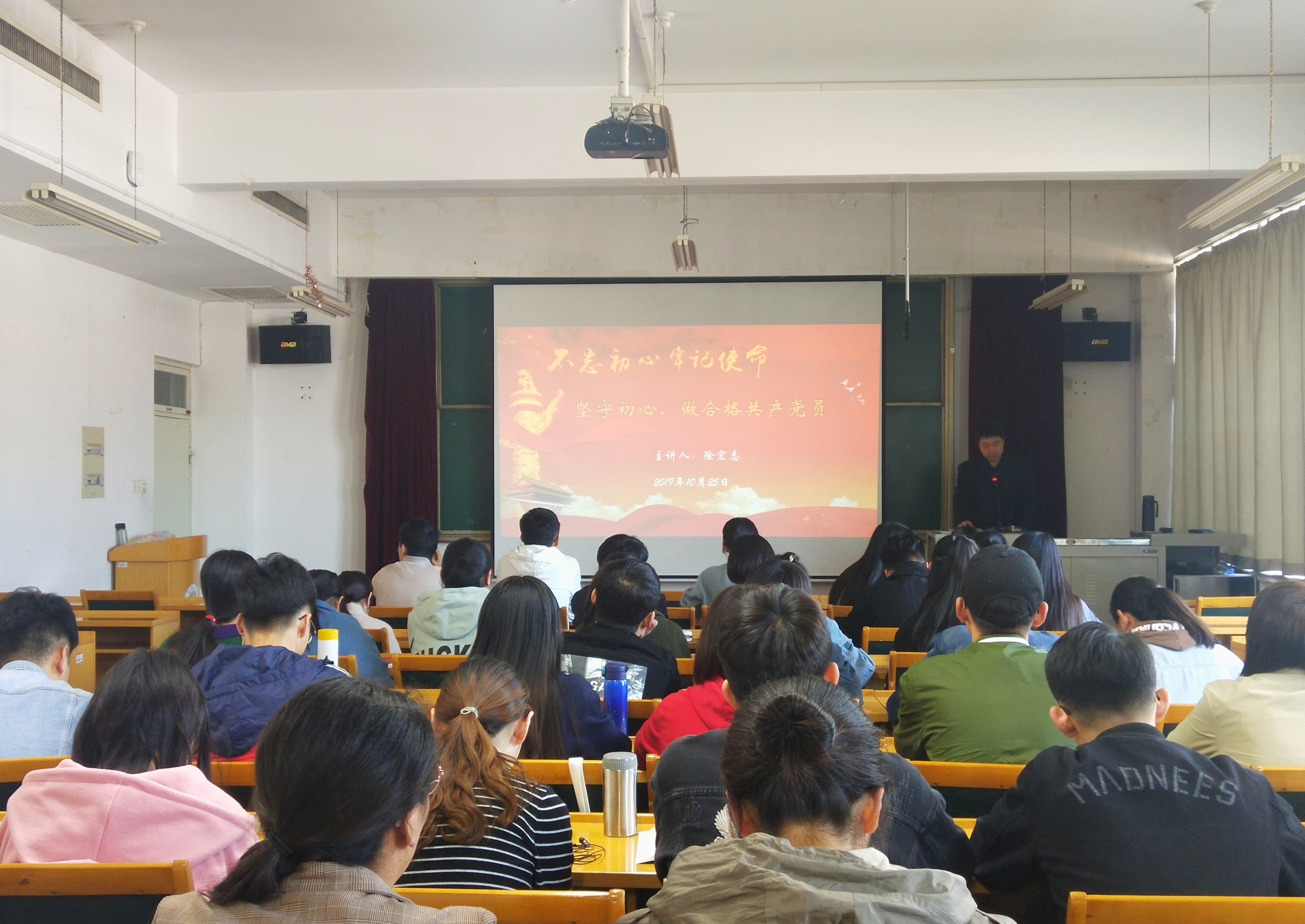 10月25日下午,信息学院学生党支部于文理大楼804开展2019年专题党课集中学习活动,此次党课由学院党委副书记徐宏志担任主讲,学院全体学生党员参加。