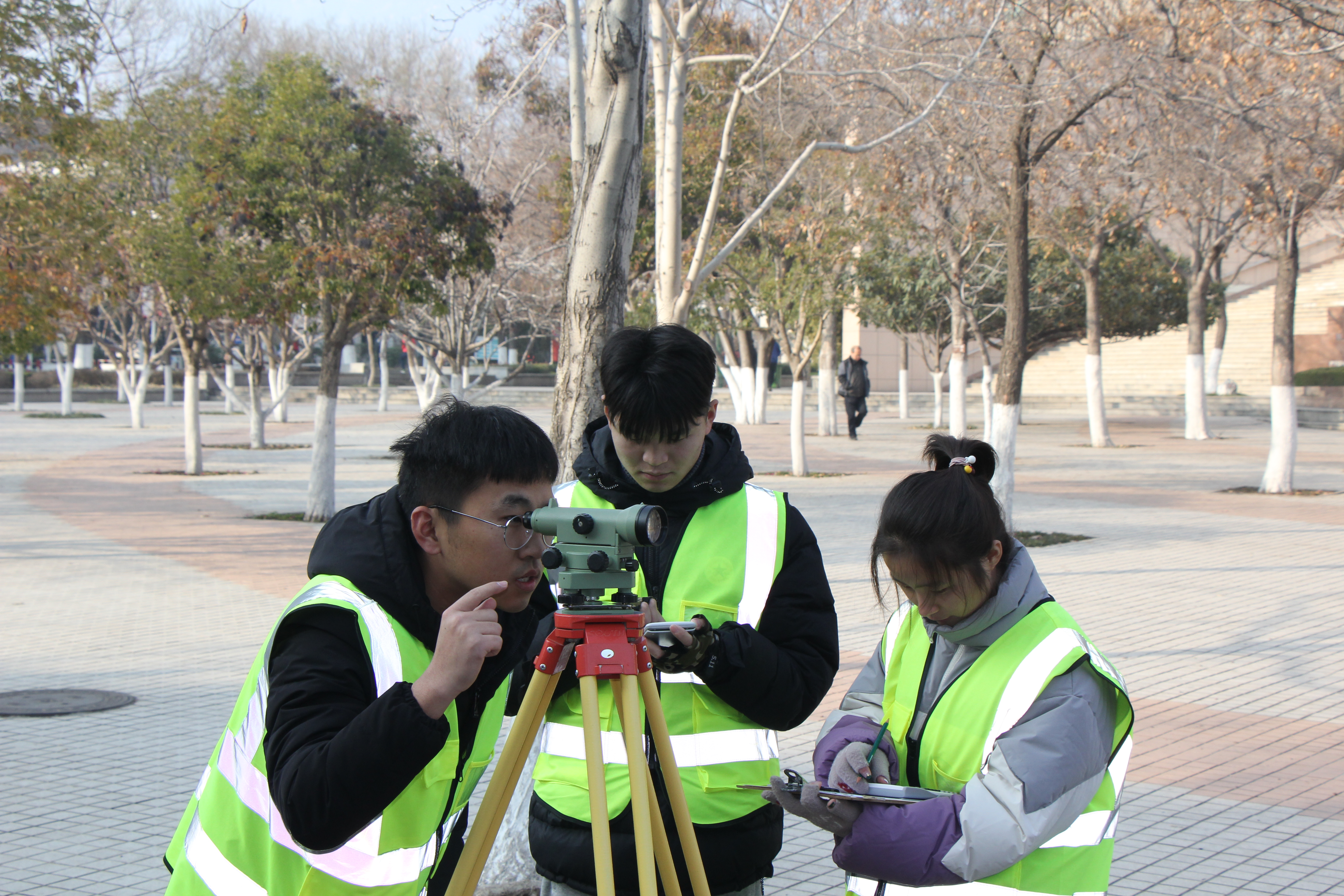 比赛项目为四等水准测量的外业测量和内业计算两部分,各参赛队伍需在规定时间内完成规定项目的数据测量和处理。安置、观测、读数、记录、计算、迁站,各参赛队伍成员间团结协作,合理分工,拼尽全力,争分夺秒,力求操作准确、测量迅速、数据精准。咫尺之间,展现出参赛选手一丝不苟、精益求精的精神风貌。裁判老师以测量时间、测量步骤、熟练程度对各参赛队测量成果质量进行综合测评。本次比赛奖项设定按照特等奖10%、一等奖20%、二等奖30%的比例,经过激烈角逐,产生特等奖2个、一等奖4个、二等奖5个,共11个参赛队获奖。