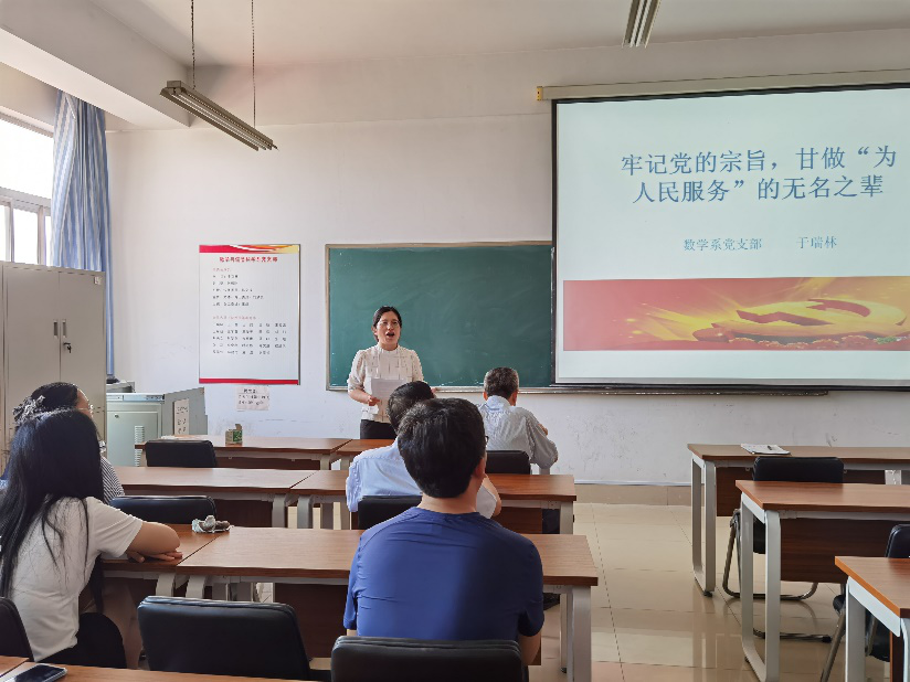 为庆祝中国共产党建党99周年,数学系党支部于2020年6月30日在文理大楼723举行了“庆七一党课大家讲”活动。