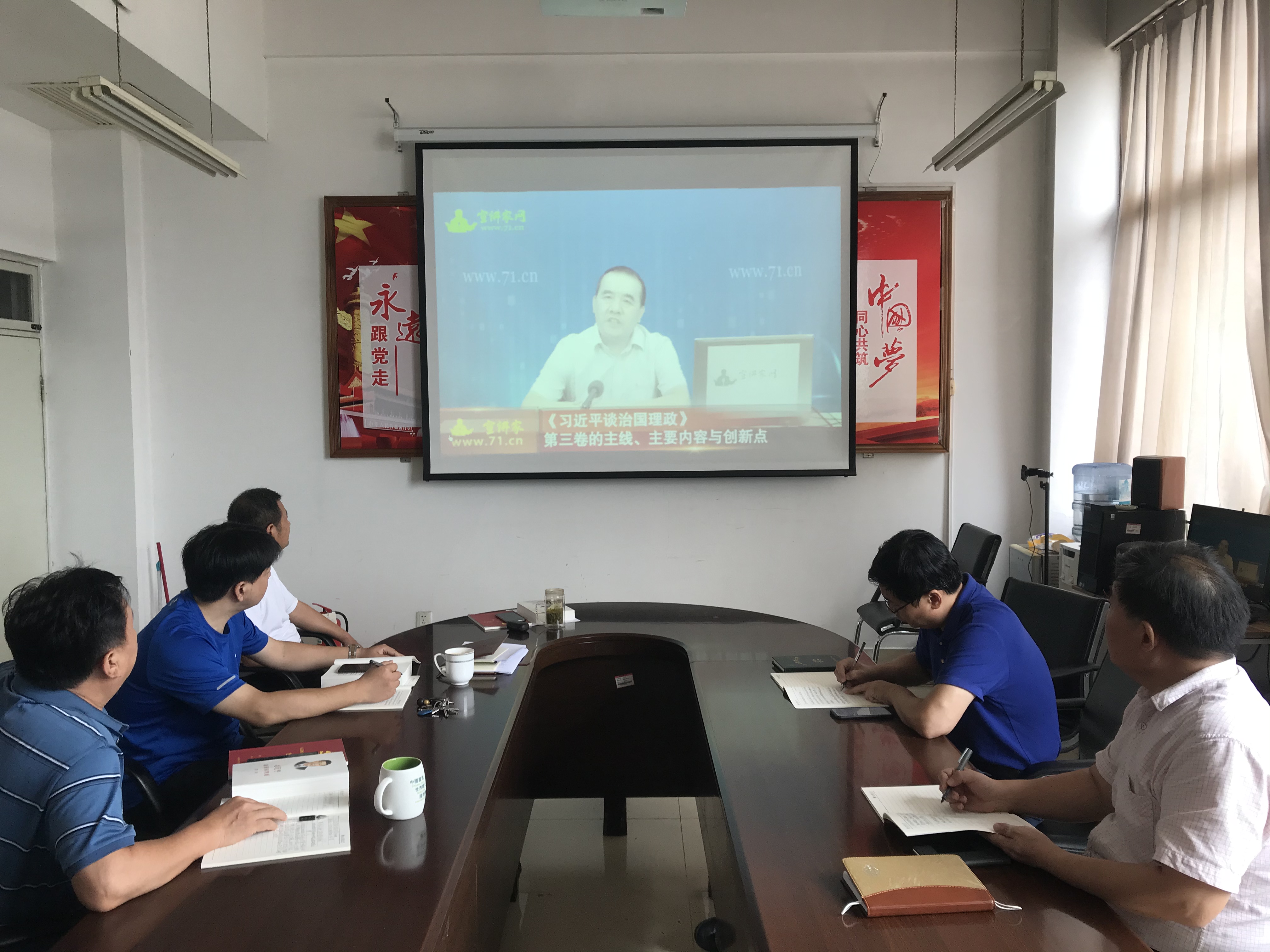 随后,与会人员集中观看了中国社会科学院习近平新时代中国特色社会主义思想研究中心执行副主任龚云宣讲视频《<习近平谈治国理政>第三卷的主线、主要内容与创新点》。李西灿在总结讲话指出,学院要迅速兴起学习热潮,要把《习近平谈治国理政》第三卷作为党委理论学习中心组重点学习内容,全面系统学、深入思考学、联系实际学,将中心组集体学习、党员干部自学、支部集中学相结合。做到“学以致用”,不断提高政治能力,切实把学习成效转化为推动学院发展的治理能力和工作水平。