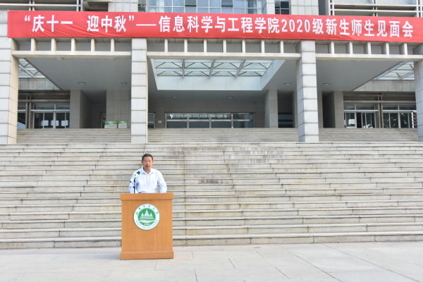 10月1日上午,信息学院于南校区综合楼广场举行“庆十一,迎中秋”—2020级新生师生见面会。学院领导、各系、中心主任、新生班主任、学院办公室成员、全体辅导员、第十九届学生会干部、新生班主任助理以及2020级全体新生参加大会,会议由学院党委副书记徐宏志主持。