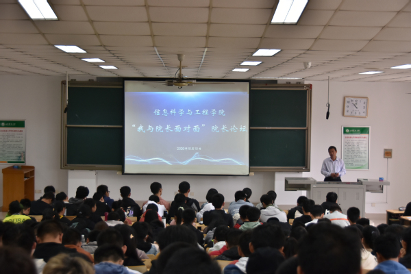 10月10日上午,信息学院新生入学教育系列活动之“我与院长面对面”论坛于南校区综合楼N201教室成功举办。本次论坛由学院院长李西灿担任主讲,团委老师、2020级全体新生参与。