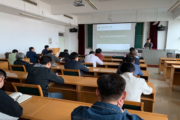 石磊就我校研究生培养方案、毕业要求、相关政策等各个方面做了全面的分析和解读,对导师关于学生的研究方向及专业培养等方面提出了具体要求;对2021级考研新变化做了详细的介绍。成子强教授带大家深入领会了习近平新时代教育思想,特别强调要把师德师风作为评价研究生导师综合素质的第一标准。他根据自己的工作经验,向大家阐述了研究生导师立德树人的职责,提出要明确研究生导师的定位、变革研究生导师的职责和任务。