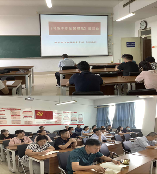 四是组织开展系列学习活动。公共数学小组与应用数学小组在数学系党支部组织下,专题学习研讨《习近平谈治国理政》第三卷(图3)。