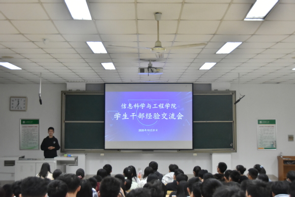 为帮助学生干部树立责任意识、提升工作能力、优化服务质量,真正将自我教育、自我服务、自我管理、自我监督落实抓细,10月31日晚,信息学院于南校区综合楼N202组织学生干部经验交流会。本次交流会由2019级孙文烁、徐钰民、李冰倩作为优秀学生干部代表担任主讲,团委老师以及2020级全体学生干部参加。