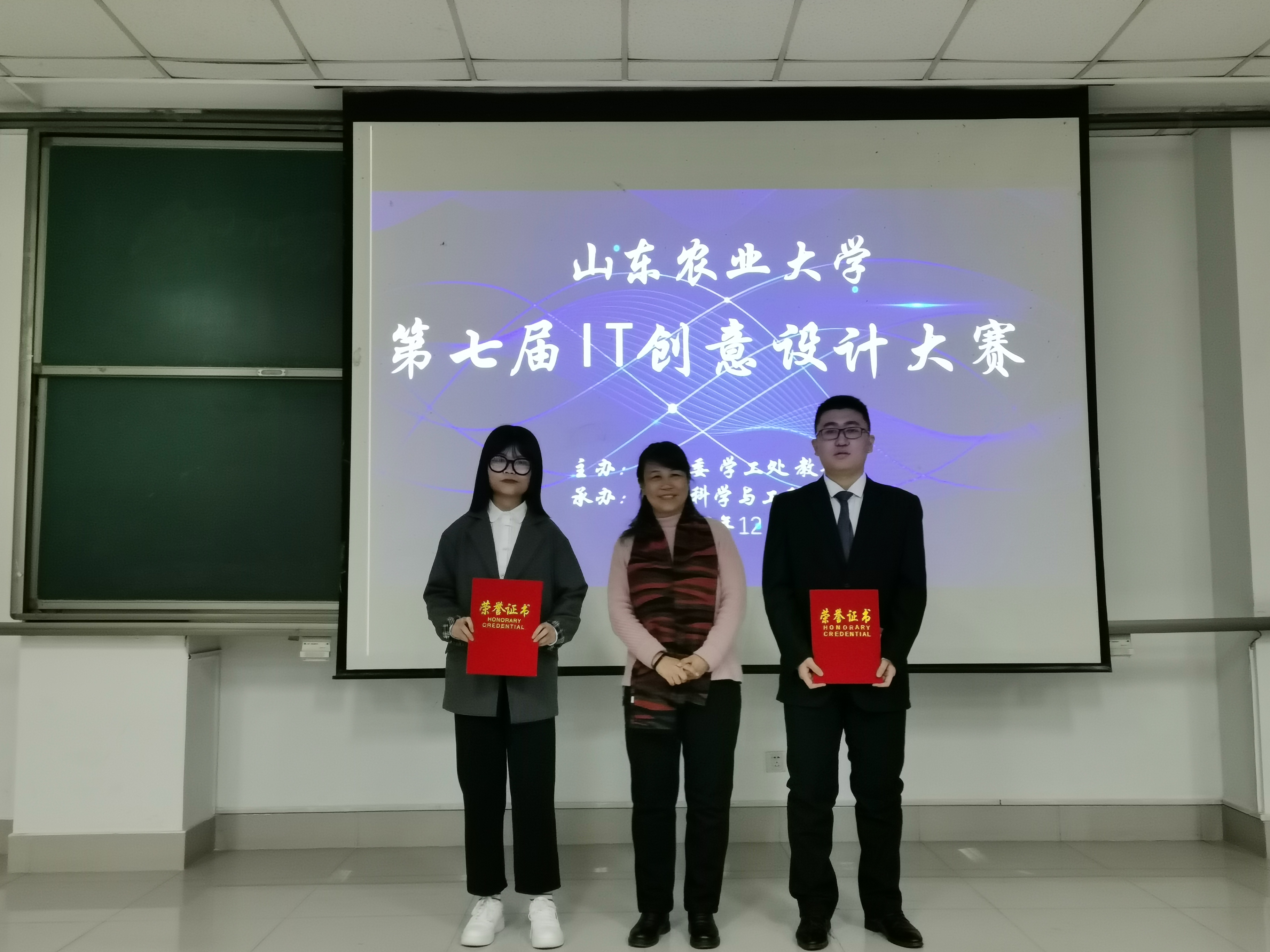进入决赛的参赛作品涉及到农业、经济、法律、艺术等多个领域,体现出较强的创意性。决赛现场,各参赛团队通过精彩的视频和PPT向大家展示了团队项目的创新性、开发可行性以及发展方向多样性,评委老师充分了解了项目的功能及应用方向;答辩环节,评委根据参赛作品的技术性、操作性、原创性和讲解情况等方面进行了提问,参赛选手沉着应答,展示了其充分的赛前准备与扎实的项目理论基础。赛末,评委兰鹏教授对本次比赛进行了总体点评,在肯定各团队项目的同时,也指出了部分队伍在创新性、实用性方面的不足,并提到同学们如果想要做出更好的创意设计项目就要追求小而精而非大而全。经过激烈角逐,智联队的“农大植医”项目和意动团队的“创未来经济共享平台”项目获得本次大赛一等奖,其余团队分获二等奖及三等奖。