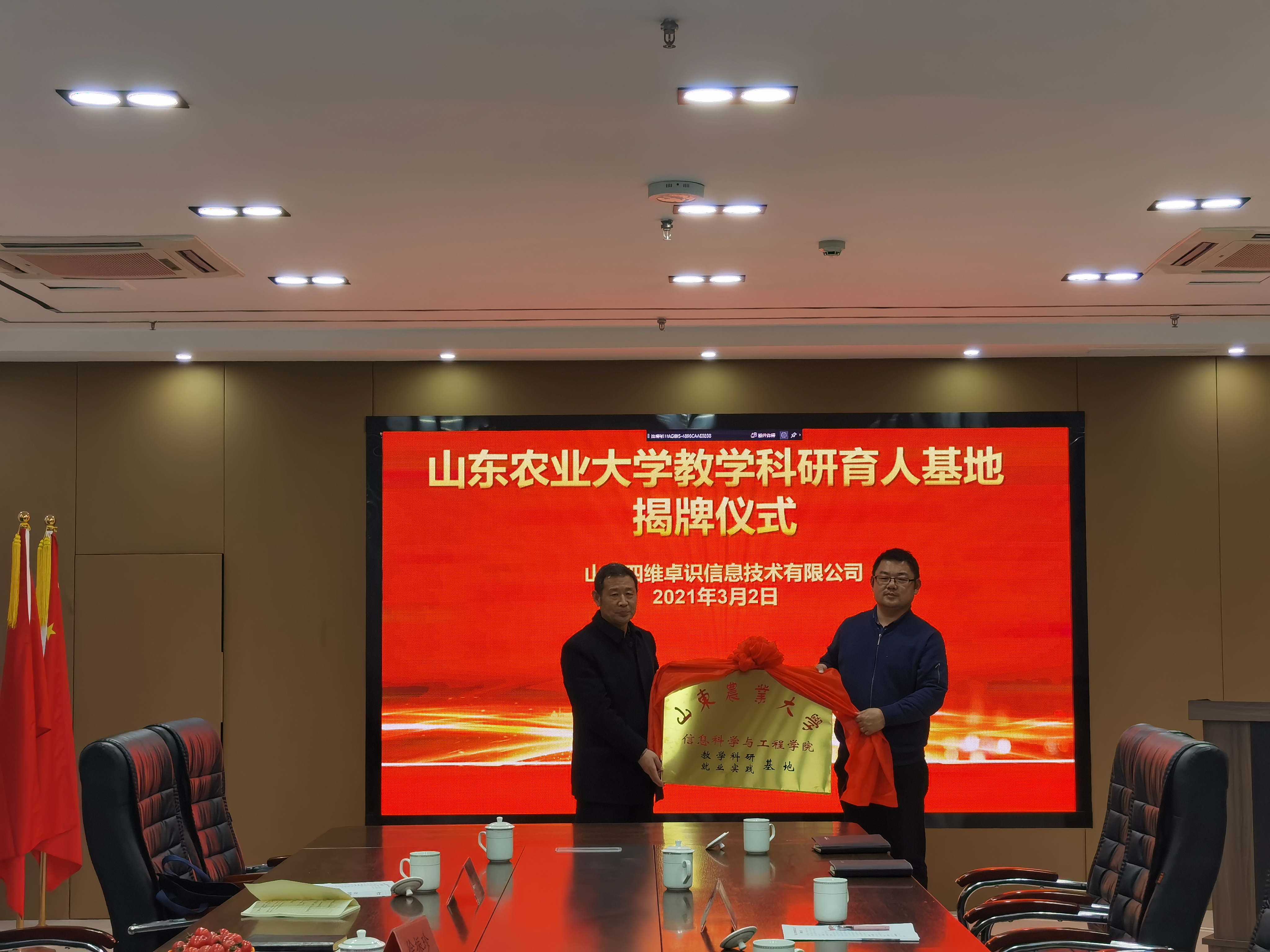 授牌仪式上,学院与山东四维卓识技术有限公司进行座谈,就平台建设、项目合作、人才培养为等方面进行了深入的交流并达成了初步协议。同时,双方就将探索打造具有山东特色、可借鉴、可复制、可推广的数字乡村建设进行了探讨。