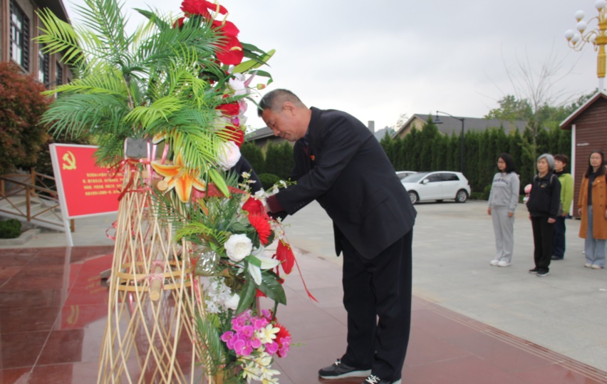 学院领导代表全体党员向毛泽东主席塑像敬献花篮后,全体党员怀着无比崇敬的心情向毛主席三鞠躬。全体党员庄严地举起右手,重温入党誓词,坚定理想信念,增强宗旨意识,砥砺初心,牢记使命。