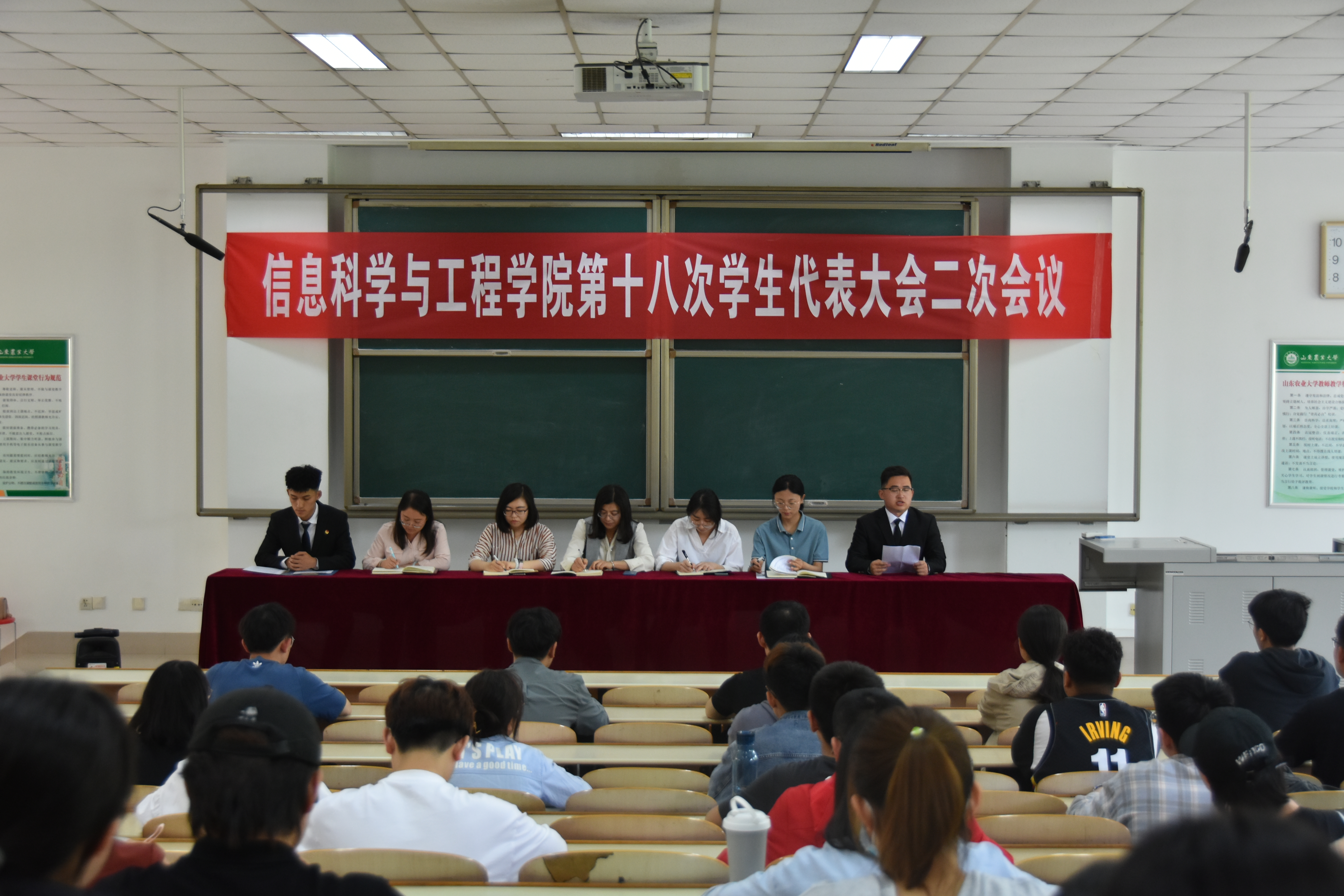 5月12日上午,信息学院第十八次学生代表大会二次会议在南校区综合楼N203召开,团委书记徐振珍、全体团干部及120名学生代表参加大会。