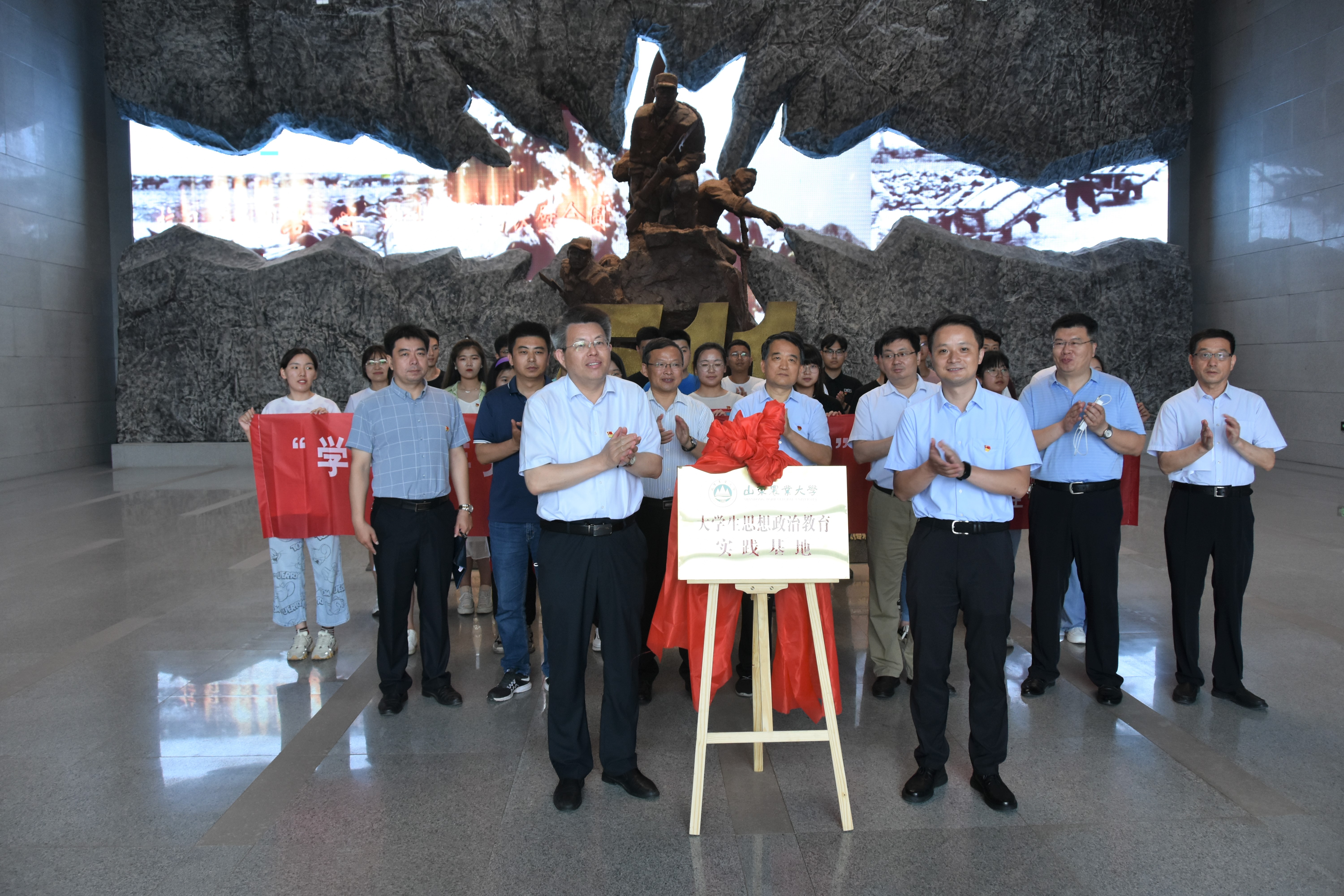 6月10日,我校大学生思想政治教育实践基地在陆房突围胜利纪念馆挂牌。学校党委副书记杨天梅与肥城市市委常委、办公室主任尹延涛共同为基地揭牌。信息学院党委书记李广松与陆房红色教育基地主任王宜峰签订协议。肥城市陆房红色教育基地管理中心、我校学工处、信息学院相关负责人及部分学生党员代表参加活动。