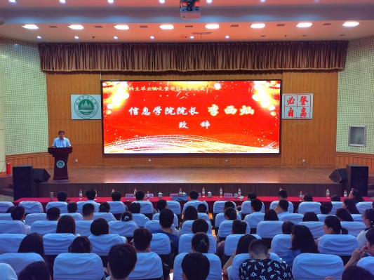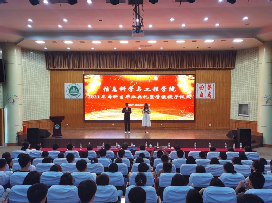 又到一年毕业季,又是一年离别时,再度踏上征程路。6月19日上午,信息学院2021届本科生毕业典礼暨学位授予仪式在南校区图信楼报告厅隆重举行。学院领导、各教学系负责人、导师代表、全体辅导员以及2021届本科毕业生参加典礼。