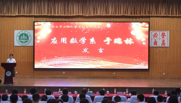 毕业典礼上,千言万语道不尽老师对学生的牵挂和希望,万语千言说不尽同学对母校的留恋和不舍。于瑞林老师代表全体教师做临别寄语,她用通俗、轻松、幽默又不乏哲理的话语为毕业学子们上了大学的“最后一课”,希望同学们树立终身学习的理念,修身养德,明辨是非,增强才干,善于作为,不断迈上学识的新台阶,不断进入人生的新佳境,成为更好的自己,成就精彩的人生。毕业生李聪聪代表所有毕业生发言,他细数在校学习四年期间的种种感动与收获,话语里溢满对母校的无限感恩之情。