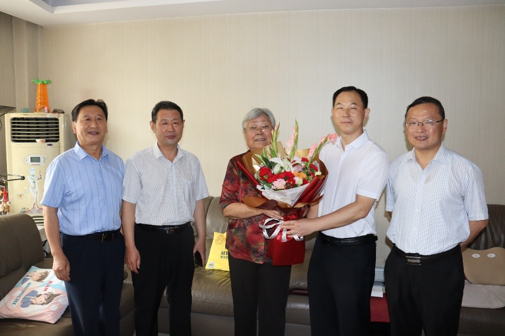 6月28日上午,辛杰副校长一行首先来到退休老党员、老教师郭华北老师的家中,他向郭老师送上鲜花、送上祝福,老人脸上洋溢着幸福的笑容与盛开的鲜花交相辉映。辛杰关切地询问老人的身体状况和家庭情况。辛杰表示,老党员、老教师是学校、学院的宝贵财富,老同志当年的艰苦奋斗为学校今天取得的成绩奠定了坚实的基础,希望他们保重身体,一如既往地关心支持学校、为学校发展出谋划策。郭老师感谢学校、学院领导的关怀,她以个人的亲身经历感受到的党的温暖,对党和国家前途充满了信心;她表示在校领导的正确领导下,全校师生凝心聚力,大家一起为学校转型发展添砖加瓦,学校事业出现了更加良好的发展态势,大家深感欣慰和振奋。他们将进一步发挥作用,继续为学校各项事业发展献计献策,共同加快学校发展步伐。