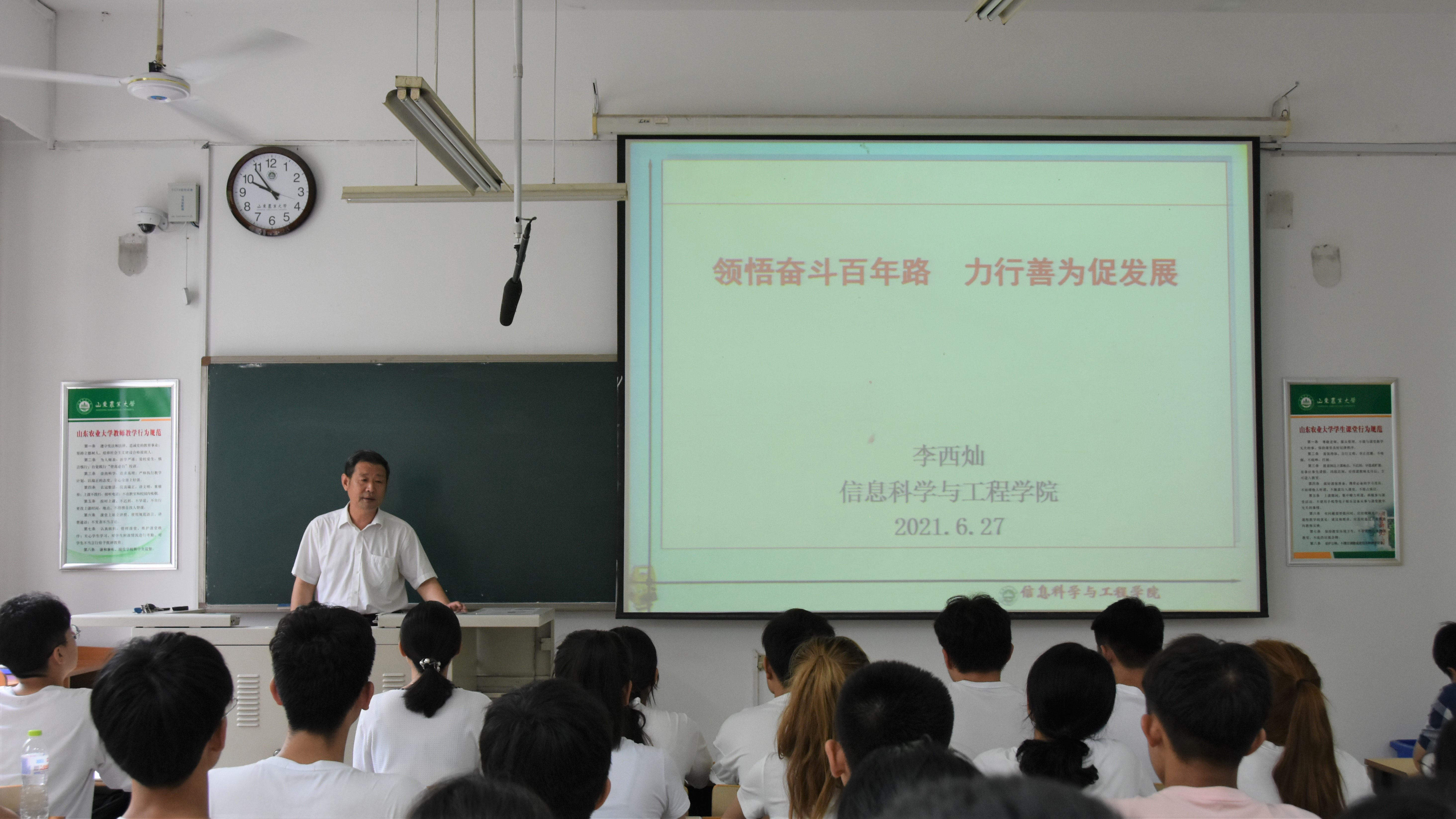 7月6日,信息学院院长李西灿以“领悟奋斗百年路 力行善为促发展”为题,结合自身党史学习感悟为学院学生干部上了一堂精彩纷呈的思政课。此次思政课由学院党委副书记徐宏志主持,2020级学生干部参加。