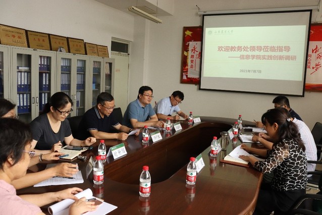 7月7日上午,学校教务处接玉玲副处长一行四人来我院,就学院实践创新开展调研,具体就学科竞赛、大学生创新创业、实践教学、毕业论文工作等方面进行座谈。学院党委书记李广松参会,副院长王志军主持座谈会,团委书记徐振珍及教师代表参加座谈会。