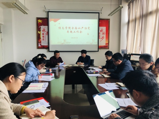 11月2日上午,信息学院于北校区文理大楼1202会议室组织召开全面从严治党专题会议。学院党委书记李广松主持会议,学院党委委员、党支部书记参加。