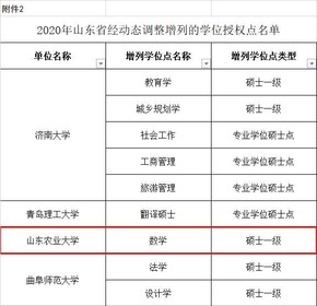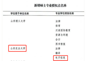 近日,国务院学位委员会正式下发《国务院学位委员会关于下达2020年动态调整撤销和增列的学位授权点名单的通知》和《国务院学位委员会关于下达2020年审核增列的博士、硕士学位授予单位及其学位授权点名单的通知》。国务院学位委员会批准了2020年博士、硕士学位授权点名单,山东农业大学信息科学与工程学院数学专业增列为硕士学位授权点一级学科,电子信息专业获批硕士专业授权点。