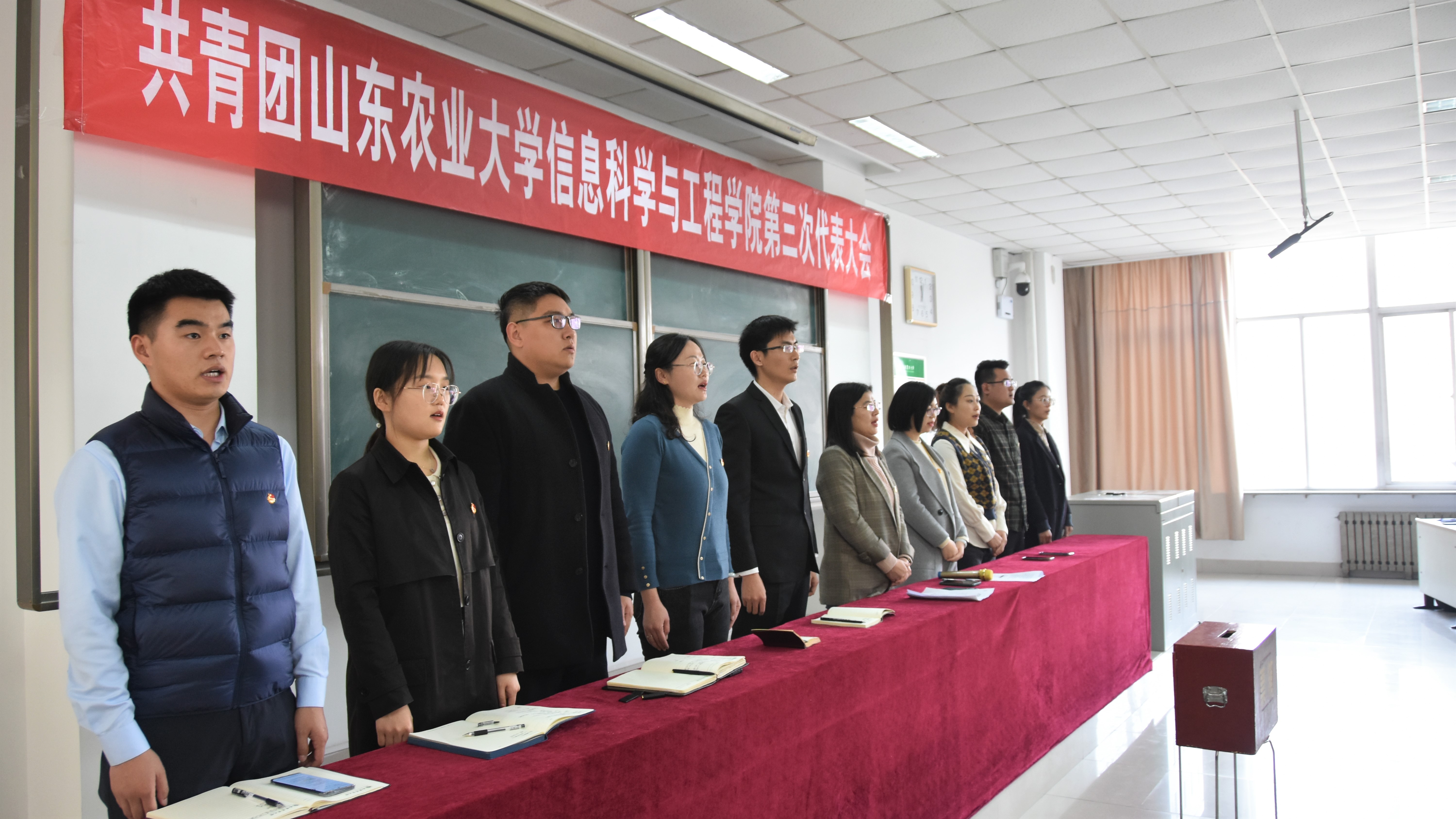 会议伊始,全体起立,奏唱国歌。学院团委书记徐振珍同志代表共青团山东农业大学信息科学与工程学院团委委员会做题为《脚踏实地跟党走,久久为功践初心,奋力开创信息学院共青团工作科学发展新局面》的工作报告。报告回顾和总结了学校第二次团代会以来取得的成绩和经验,提出了今后一个时期学院共青团工作的总体目标和主要任务,强调要紧密围绕主责主业,进一步提升共青团工作思想引领力;坚持固本强基,提升共青团基层组织力;搭建实践育人平台,引领团员青年成长成才,提升共青团工作服务力;深化作风建设,提升服务学院、学校事业发展大局贡献度。面对新时代的挑战,一定要正确研判当前形势,认真贯彻落实习近平新时代中国特色社会主义思想,牢固树立求实创新、开拓进取的工作理念,从党对共青团的要求出发,努力把青年学生培养成为理想远大、信念坚定的新一代,成为品德高尚、意志顽强的新一代,成为视野开阔、知识丰富的新一代,成为开拓进取、爱农兴农的新一代,把信息科学共青团的事业不断推向前进。
