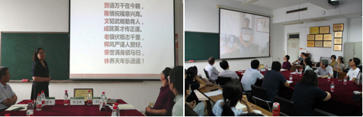 数学系党支部组织委员王晶同志代表支部送上离别赠言,表达同志们的美好祝福与祝愿。许多往届毕业生也通过视频向陈老师表示感谢送出祝福。各位老师也纷纷发言,向陈老师的崇高品德,聪明勤奋,踏实工作,淡泊名利表示致敬并送出衷心祝福。