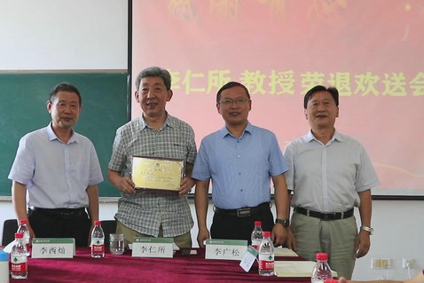 院党委书记李广松与院长李西灿分别向李仁所教授送上荣退纪念牌和鲜花,两位领导高度评价了李仁所教师对学院特别是对农大数学教育事业做出的突出贡献,感谢李老师多年来的付出并对退休生活送出美好祝愿。