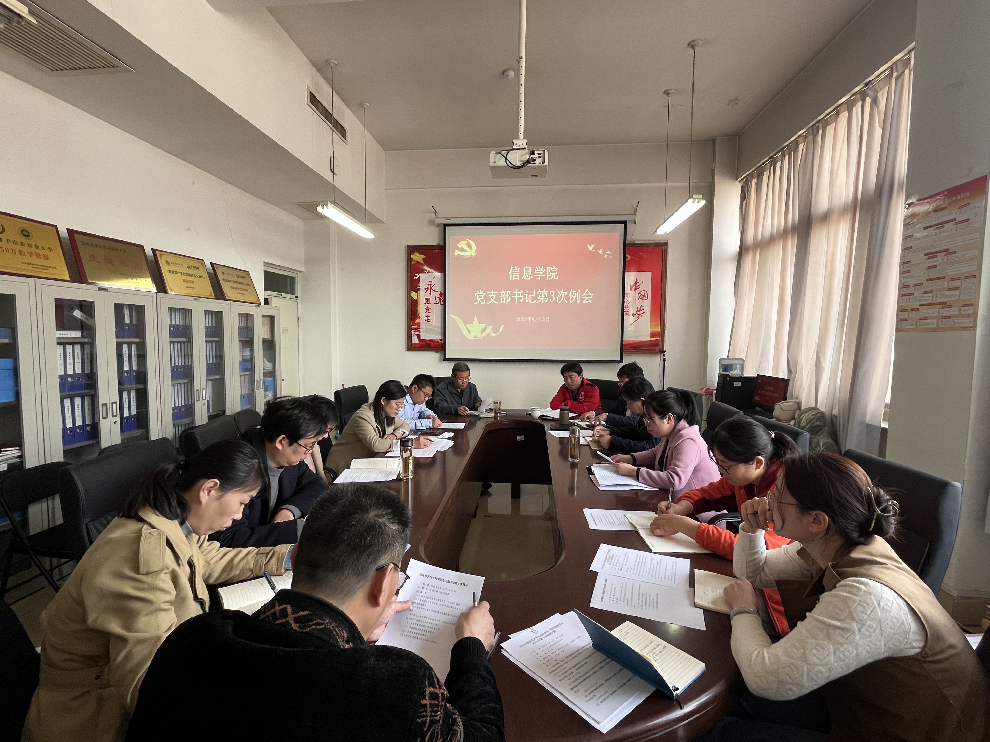 4月13日上午,信息学院在文理大楼1202会议室召开党支部书记工作例会。会议由学院党委副书记徐宏志主持,学院领导、各党支部书记参加会议。