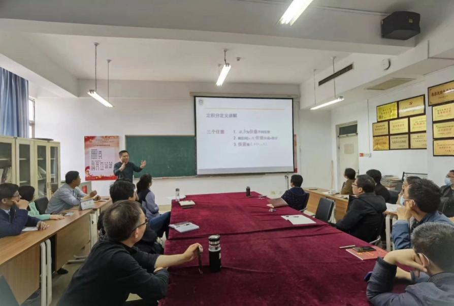 数学系优秀党员教师郝建民同志作了题为《让课堂有特色——建设明亮课堂》的专题党课。他立足教学工作,结合“定积分的定义”教学案例,与大家分享了自己的教学心得体会。他谈到,要通过与学生“同理共情”,让学生“眼明心亮”,把枯燥肃穆的数学课堂变得生动活泼、可亲可爱。
