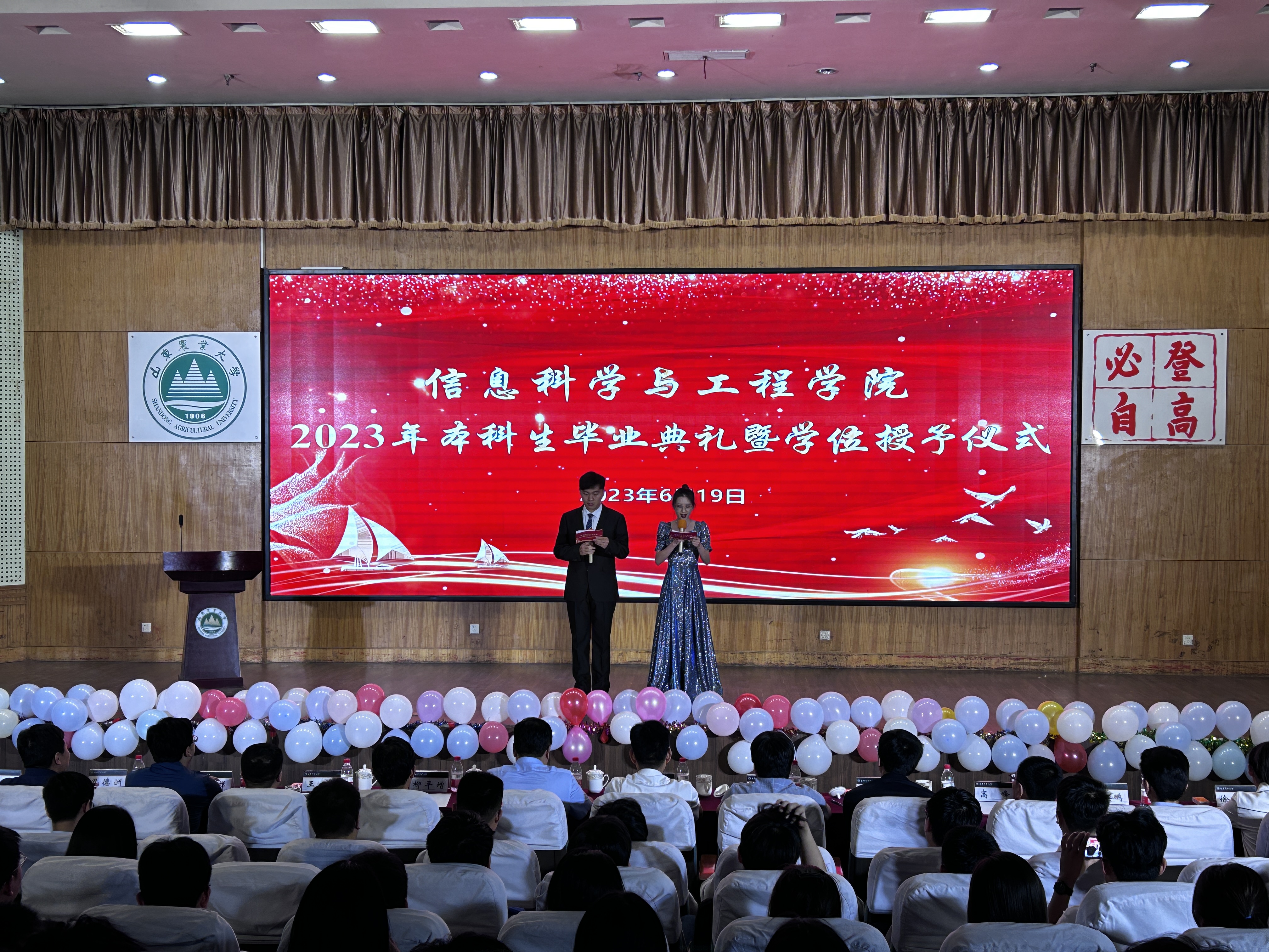 6月19日,信息学院于泮河校区第一学术报告厅举办2023届本科生毕业典礼暨学位授予仪式。学院领导、各系主任、教师代表、全体团委老师与2023届毕业生共同参与典礼仪式。
