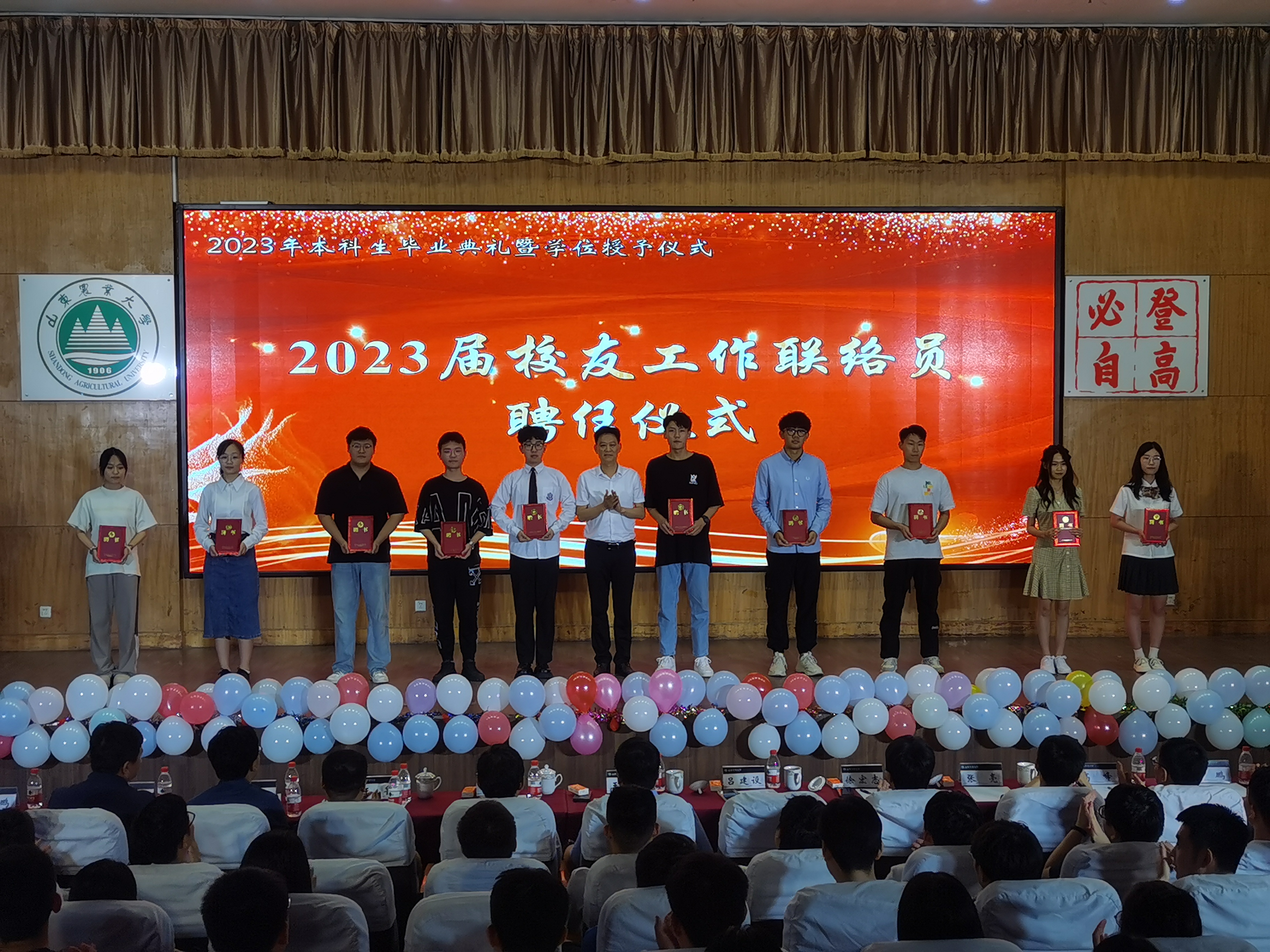 典礼在庄严肃穆的国歌中拉开序幕。学院党委书记吕建设为校友联络员颁发聘书,希望大家不忘学院重托,持续关注母院的建设和发展,以高度的责任心和奉献精神,为学校校友工作和学校建设发展作贡献。