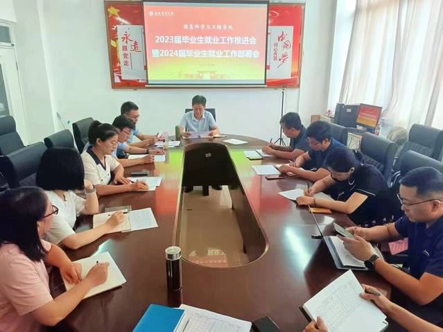7月14日上午,信息学院召开2023届毕业生就业工作推进会暨2024届毕业生就业工作部署会。学院领导、各系主任、团委辅导员参加。
