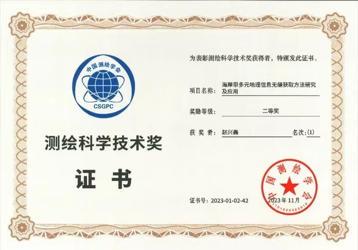 近日,由我校信息科学与工程学院青年教师赵兴磊副教授主持的《海岸带多元地理信息无缝获取方法研究及应用》,在首届中国测绘地理信息大会获得2023年测绘科学技术二等奖,这是我校教师首次作为第1完成人获得该奖项,标志着我校测绘学科水平迈向了新台阶。