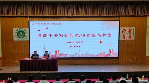 王院长以《用奋斗书写新时代的责任与担当》为主题,围绕学校历史、科研教育、师资力量、人才培养以及社会服务等方面对学校及学院的概况作简要介绍,从校训“登高必自”出发,围绕“卑、信、警、强、己、律”等六个方面阐述大学生应如何度过大学时光,并从“坚持、坚守、坚毅”等方面对大家提出明确要求,号召同学们要以当下为契机,主动出击,迎难而上,用激昂的奋斗精神书写新时代的责任与担当,为实现中华民族伟大复兴的宏伟蓝图贡献青春力量。
