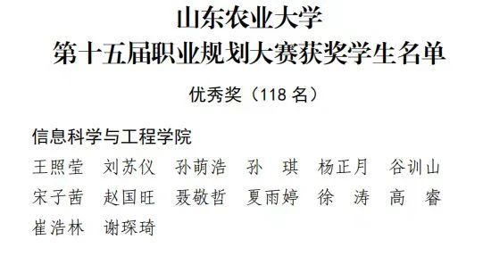 近日,我校举办的第十五届职业规划大赛圆满落幕。学院在此次大赛中斩获佳绩,赵立昊、王鹏获大赛特等奖,张冉、宋著福获一等奖,孙玉铭获二等奖,王照莹、刘苏仪等14人获优秀奖,3名教师荣获“优秀指导教师”称号,学院获评大赛优秀组织单位。