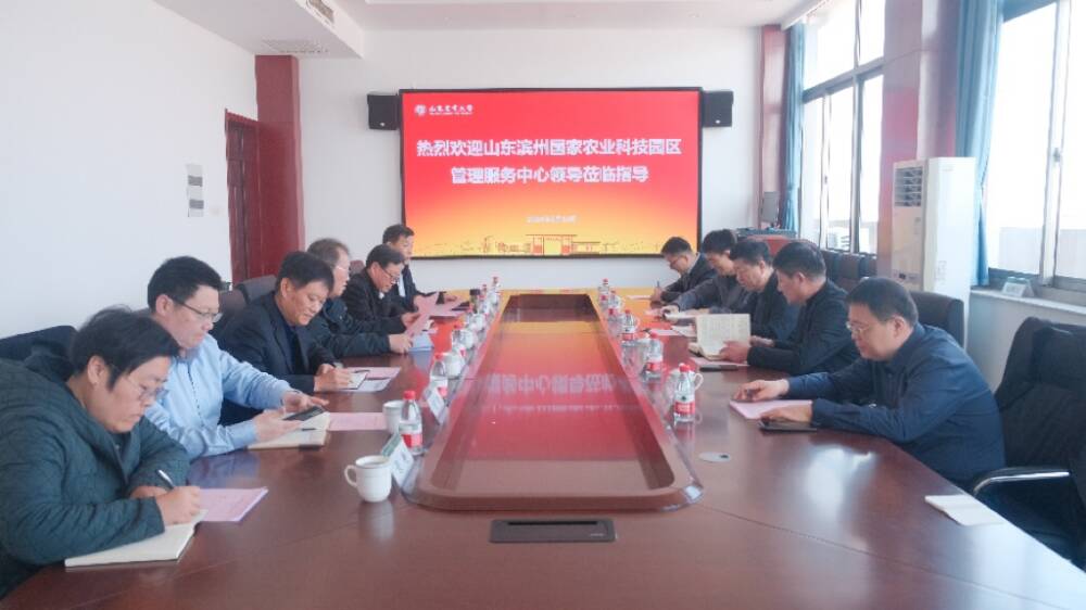 韩宾处长详细介绍了近年来学校与滨州市在乡村提振、渤海粮仓等关键领域的合作成果以及小麦育种全国重点实验室等学校科研平台建设情况,希望双方在科技项目、科研创新平台建设等方面进一步加强实质性合作,助力滨州农业信息化发展。王永军处长就学校和园区如何开展全方位合作、精准对接企业需求与专家资源以及有效促进项目落地等方面谈了自己的见解,表示将进一步加强深度合作,把学校的人才、科技、智力等资源优势转化为推动山东滨州国家农业科技园区新质生产力发展的强大动力和科技支撑。