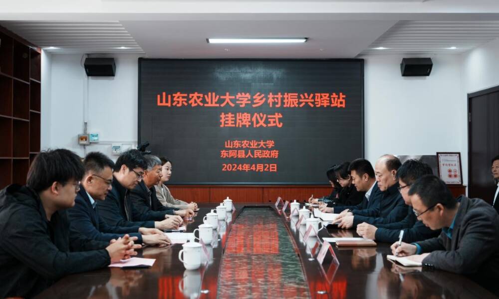 王勇代表学校向东阿县委、县政府长期以来对山东农业大学事业发展的关心帮助表示感谢,并简要介绍了学校的办学情况。他表示当前学校已发动在校学生担任家乡乡村振兴驿站的科技服务专员,搭建起学校服务地方三农产业发展的桥梁,同时,学校将完善线上乡村振兴APP功能模块建设,搭建学校与乡村信息化联系服务平台,打通服务乡村振兴的“最后一公里”。希望东阿县能够与山东农大共同搭建好、利用好乡村振兴驿站服务平台,充分发挥驿站的人才集聚、技术创新和服务网络的优势,助力当地农业稳产增产,农民致富增收,产业提档升级,共同助力乡村实现全面振兴。