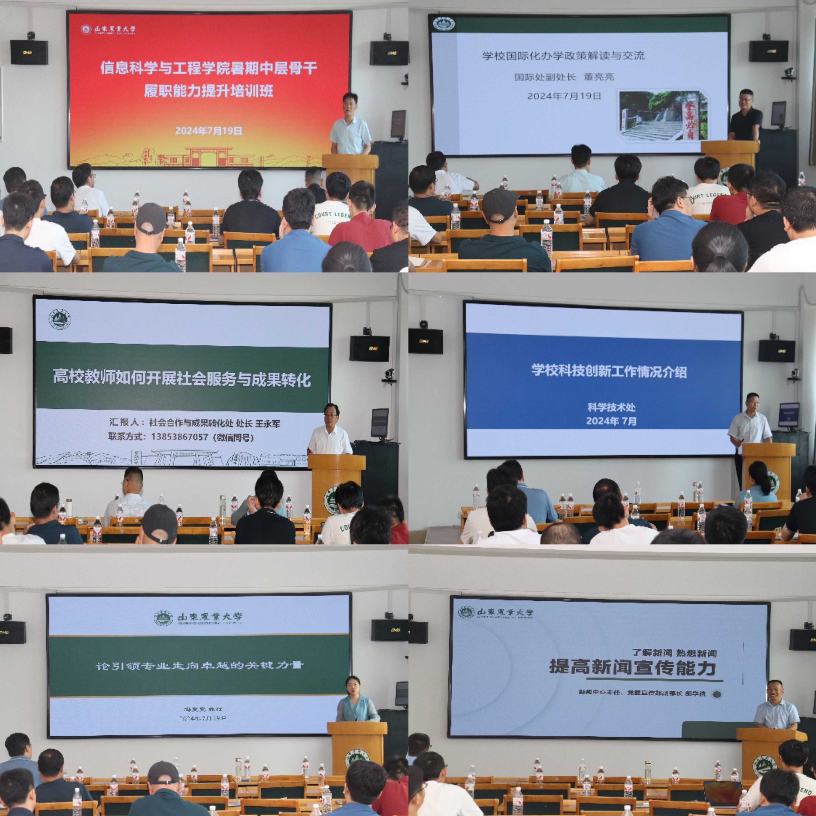 主题报告中,学院邀请了国际处、科技处、教务处、社会合作与成果转化处、新闻中心负责人就国际合作交流、科研项目申报、教育教学、成果转化、宣传思想文化等工作及相关政策进行了深入的解读。