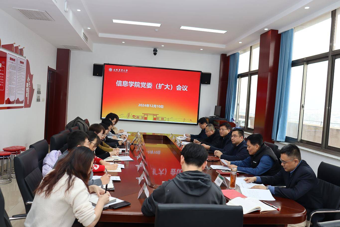 12月10日,信息学院党委(扩大)会议、党委理论学习中心组集体学习在文理大楼1204会议室召开。学校党委常委、统战部长史文宪到会指导并讲话,党委教师工作部部长、人事处巩其亮、统战部副部长朱清国列席旁听。