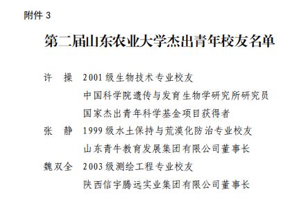 为彰显学校办学成就,密切学校与海内外校友的联系,激励广大校友奋发有为、干事创业,教育在校学生刻苦学习、全面发展,不断提升学校美誉度和社会影响力,山东农业大学根据《山东农业大学杰出校友评选办法》和《山东农业大学杰出青年校友评选办法》,授予12名优秀校友校级表彰。我院测绘工程专业2003级校友魏双全获评第二届“山东农业大学杰出青年校友”。