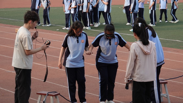 活动现场,志愿者们与中学生结成“1+1”互助小组,通过“松鼠搬家”“甲地乙地”“信任盲行”“交流分享会”四大互动环节,引导中学生敞开心扉、表达自我,提升团队凝聚力与抗压能力。信息学院心理辅导员全程督导,结合积极心理学理论帮助青少年提升抗逆力,同步锤炼信息学院心理辅导站的专业服务水平。