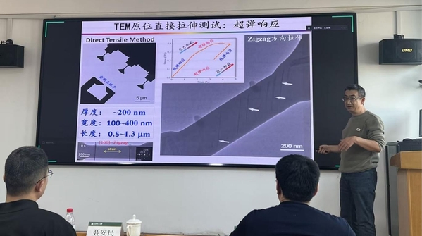 聂安民教授以《共价晶体微观变形机制》为题,详细阐明了共价晶体因化学键特性形成的独特变形规律,重点介绍了自主研制的原位实验平台在研究中的应用,相关研究突破颠覆了脆性材料变形能力的传统认知,为揭示共价晶体力学本质与探索材料塑性起源提供了关键理论支撑。