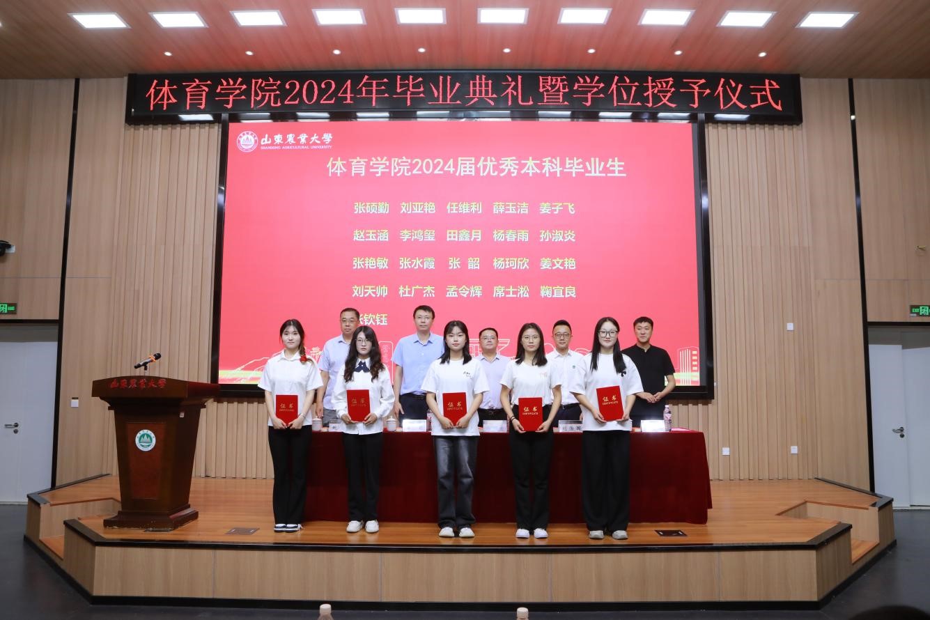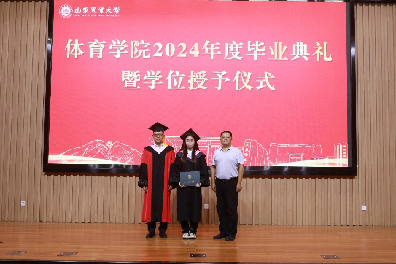 典礼在庄严肃穆的国歌中拉开帷幕。首先,学院党委书记韩同吉宣读“关于表彰体育学院2024届优秀本科毕业生的决定”,主席台领导为优秀毕业生同学颁发证书。