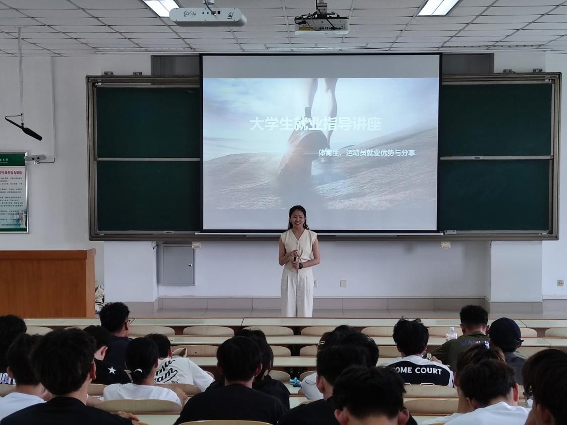 王蓓蓓院长围绕健身行业展开报告,为同学们详细介绍了体育生、运动员从事健身行业的优势,健身产业的发展情况,国家对健身行业的政策扶持以及如何成为一名优秀健身教练等内容。报告会上,王院长等还与同学们进行了亲切的互动交流,为同学们逐一解答了从事健身行业的困惑。