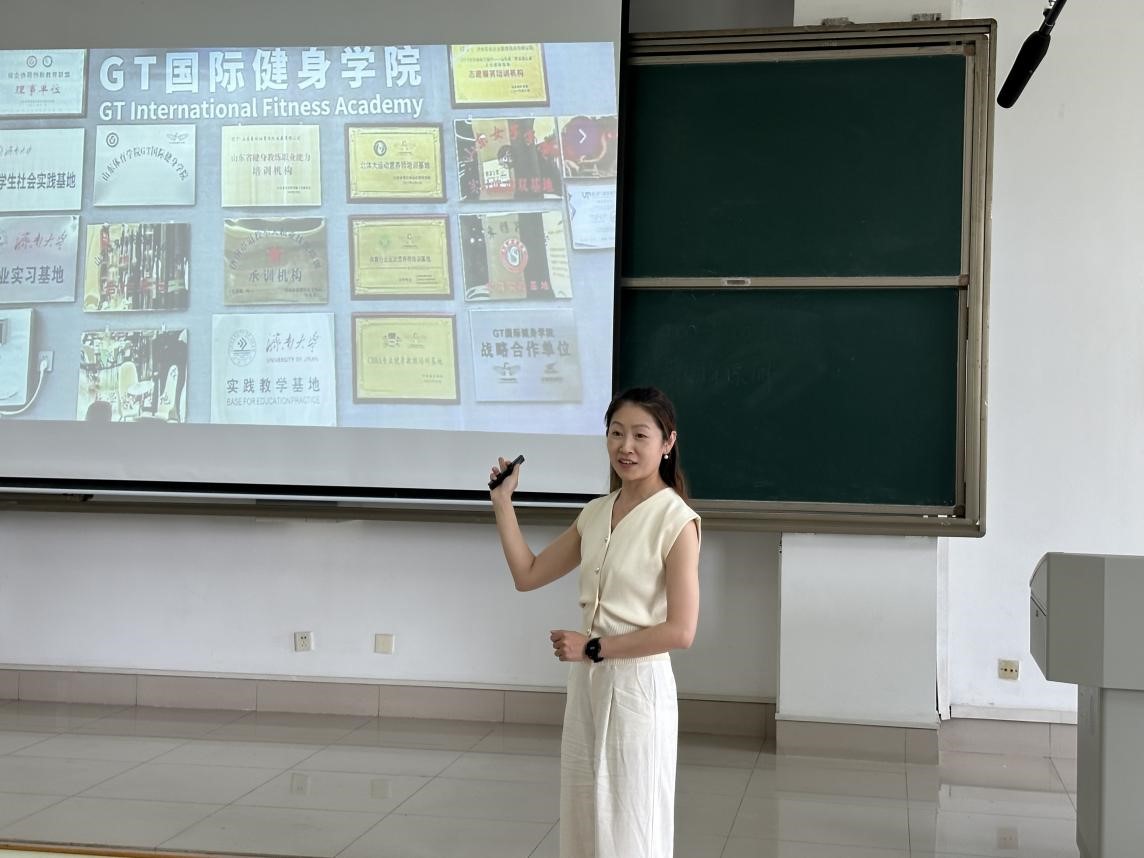 为进一步深化校企合作联系,提升学院学生职业规划能力,增强就业创业技能,6月28日,学院邀请济南GT国际健身学院王蓓蓓一行来院考察交流。济南GT国际健身学院院长王蓓蓓应邀为学院学生作题为《青春筑梦行规划创未来》的就业创业专题报告,学院教学工作办公室主任姚舜禹主持报告会。