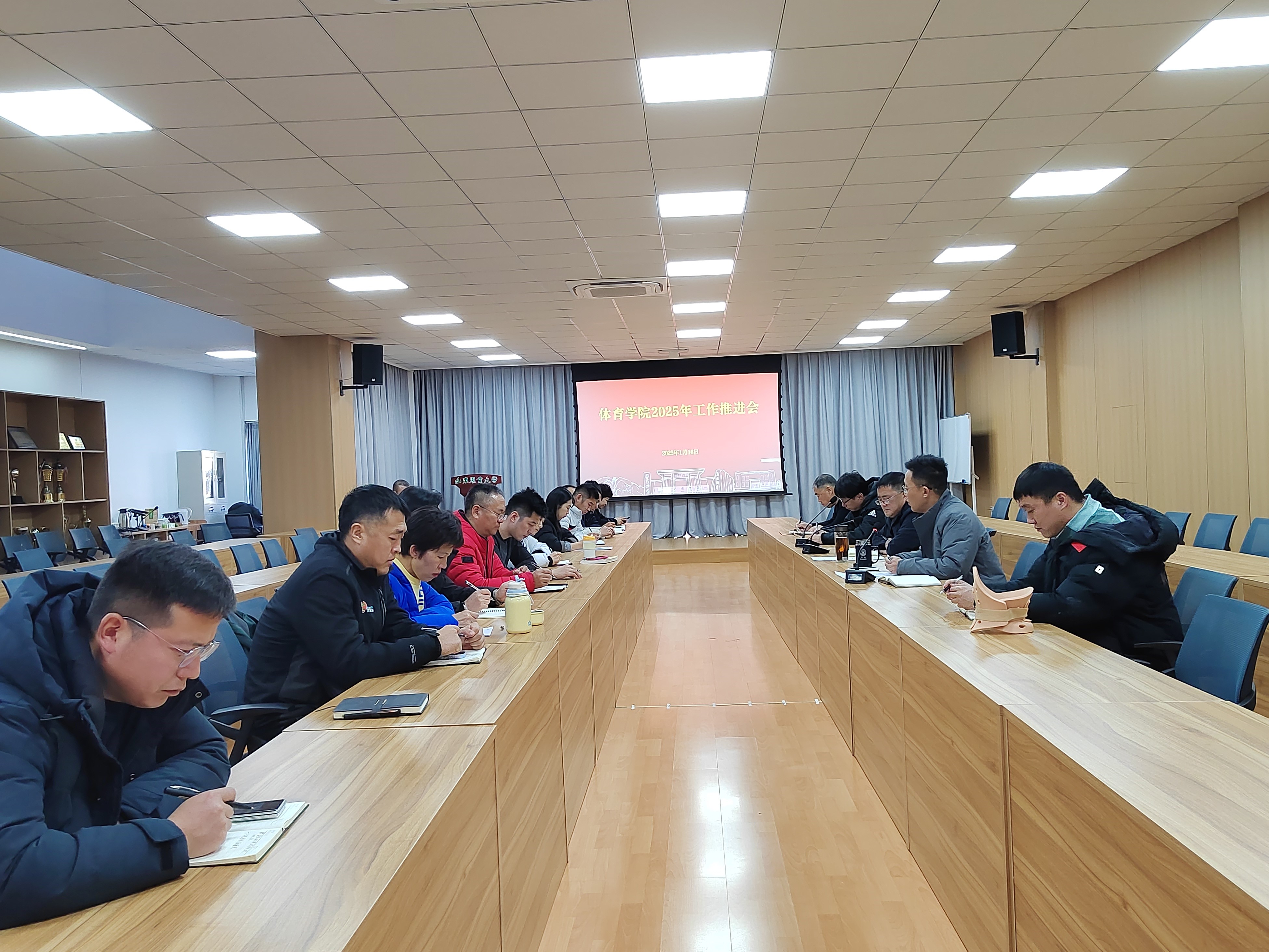 1月16日下午,学院在体育馆综合会议室召开2025年工作推进会。会议由院长刘治国主持,学院领导班子成员、教授委员会主任、各党支部书记、管理服务和教学组织机构负责人参加会议。