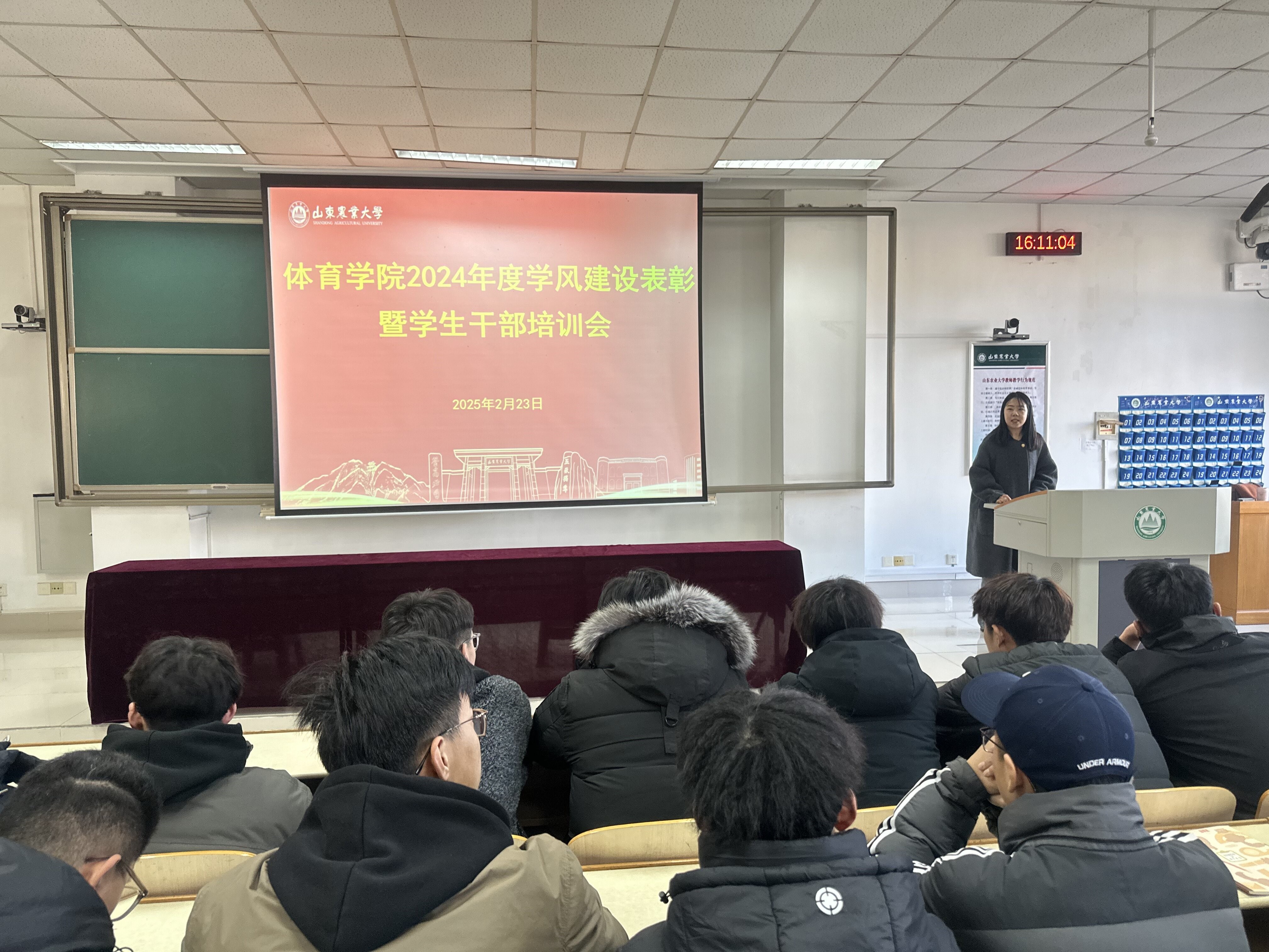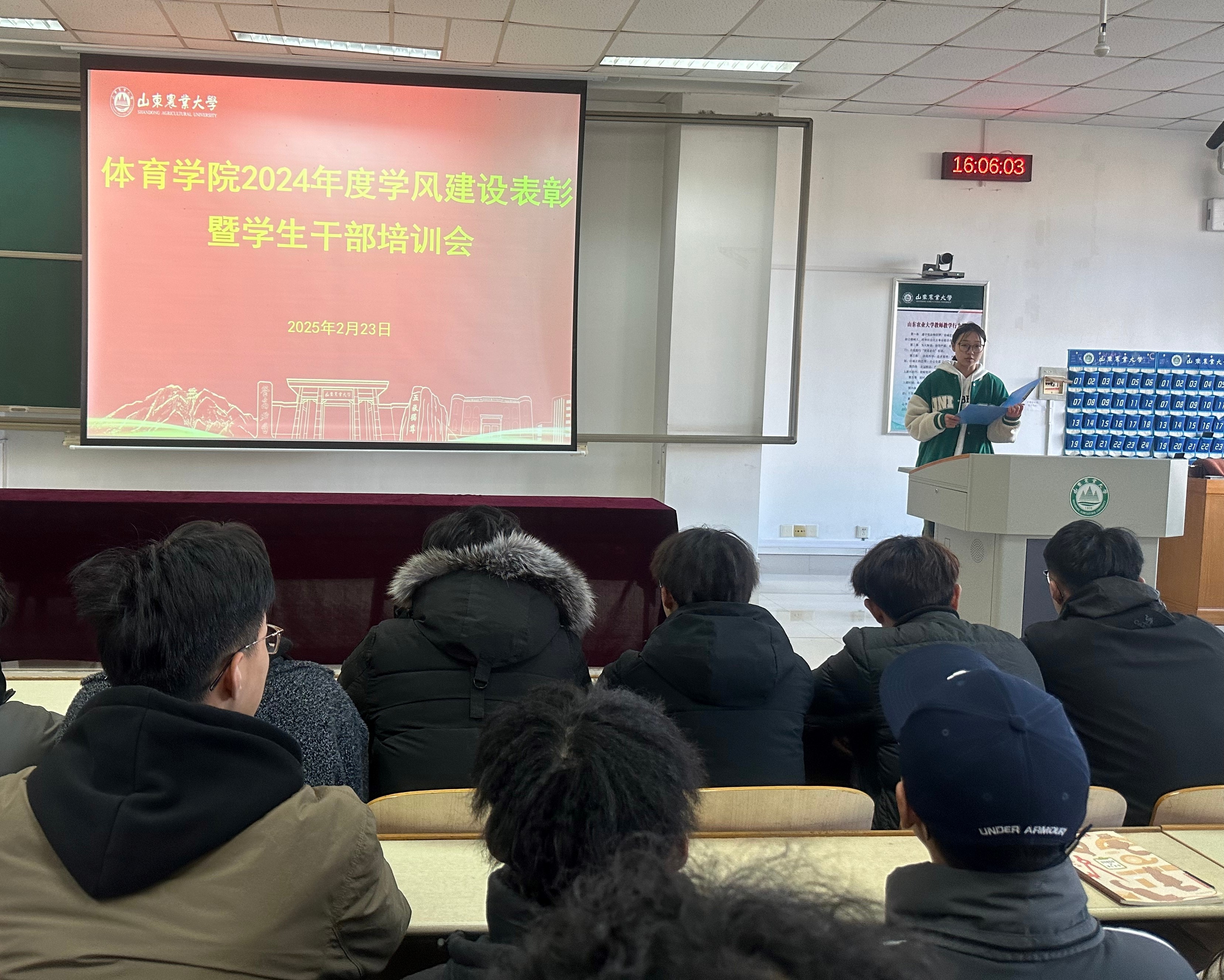 李萌副书记总结了过去一年学院学风建设工作情况,强调良好的学风是学院精神风貌的直接体现,是培育高素质人才的重要保障,要求要进一步提高思想认识,把学风建设摆在更加突出的位置,结合学院体育专业特点,以实践服务促学风,以运动训练促学风,在全校上下全力冲刺国家一流学科建设的决胜之年,全体学生要以更饱满的热情和创新精神,持续推动学院学风建设迈向新的高度。