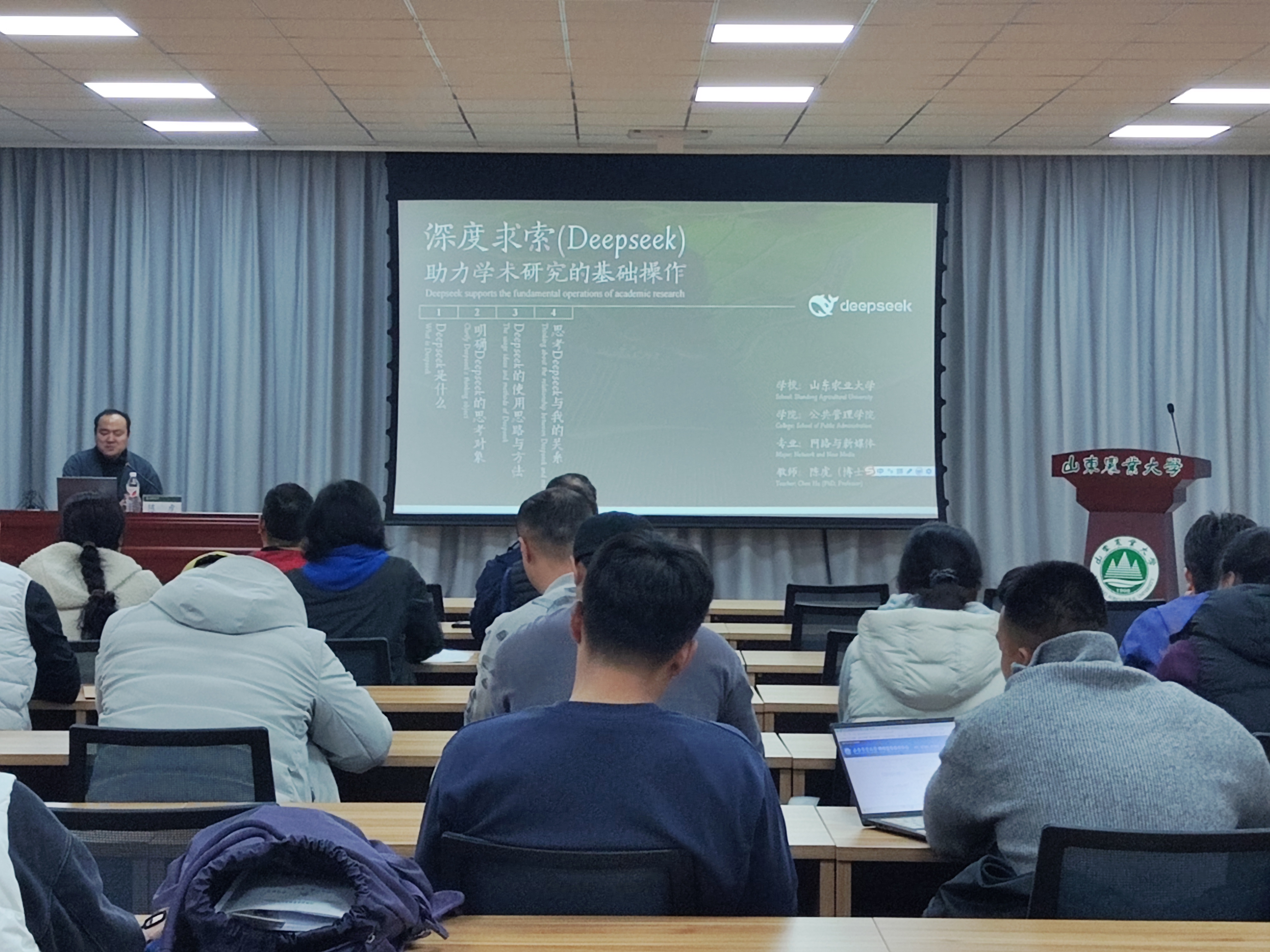 为深入推进“人工智能+教育”融合发展,提升学院教师科研创新能力,3月11日下午,学院在体育馆综合会议室举办“人工智能赋能学术研究”专题报告会。本次活动特别邀请公共管理学院陈虎教授作题为《深度求索(Deepseek)助力学术研究的创新实践》的学术报告,学院副院长许增博主持报告会,学院全体教师参加活动。