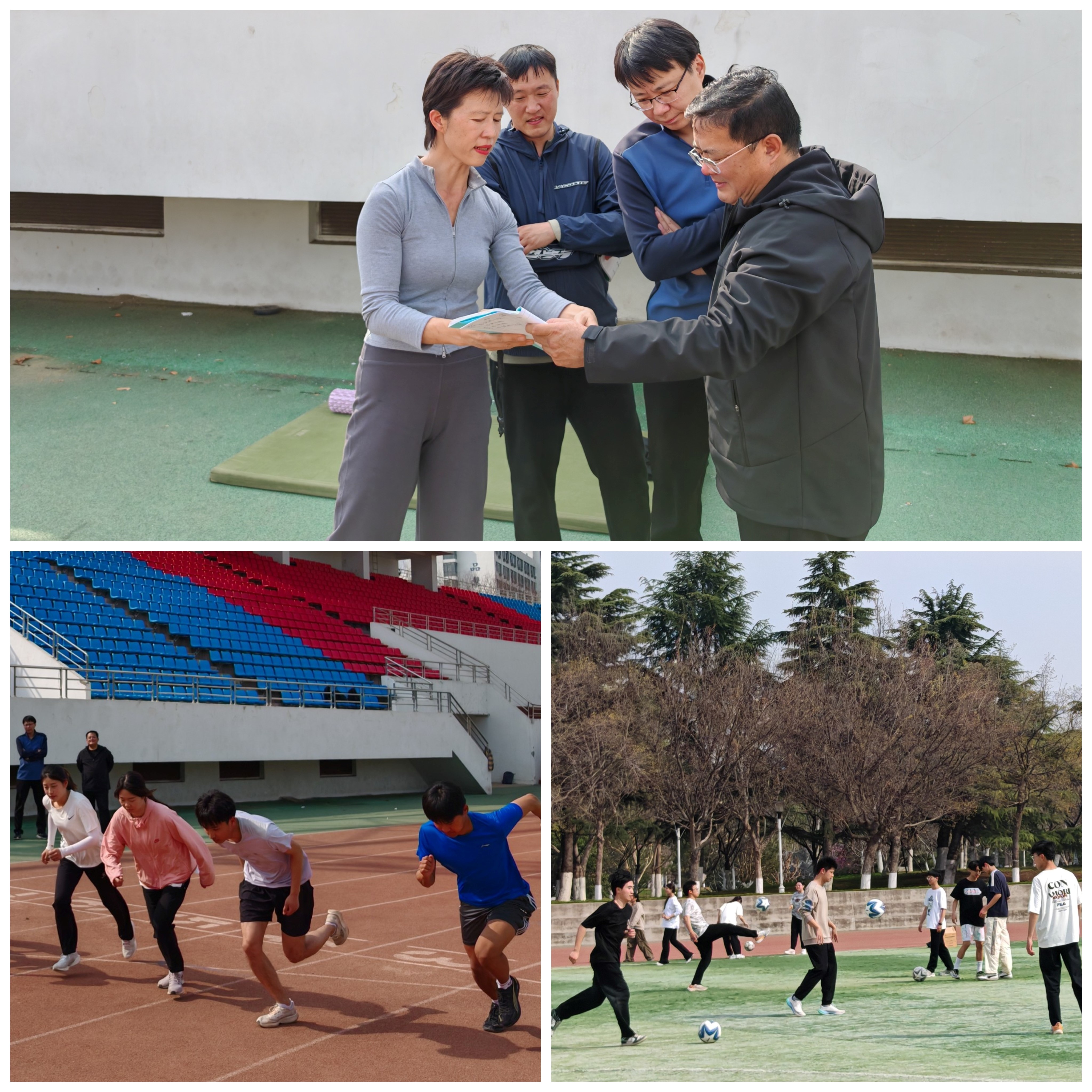 调研期间,韩书记一行深入不同年级、不同专业的体育课堂,涵盖篮球、足球、田径、武术等多个体育项目,全面了解教师的教学方法、课堂组织形式,以及学生的课堂参与度和学习效果。韩书记对教师们认真负责的教学态度和多样化的教学手段给予充分肯定。在和老师同学们互动交流过程中,认真倾听学生对体育课程的期望和建议,了解教师在教学过程中遇到的困难和需求,并提出了建设性意见。